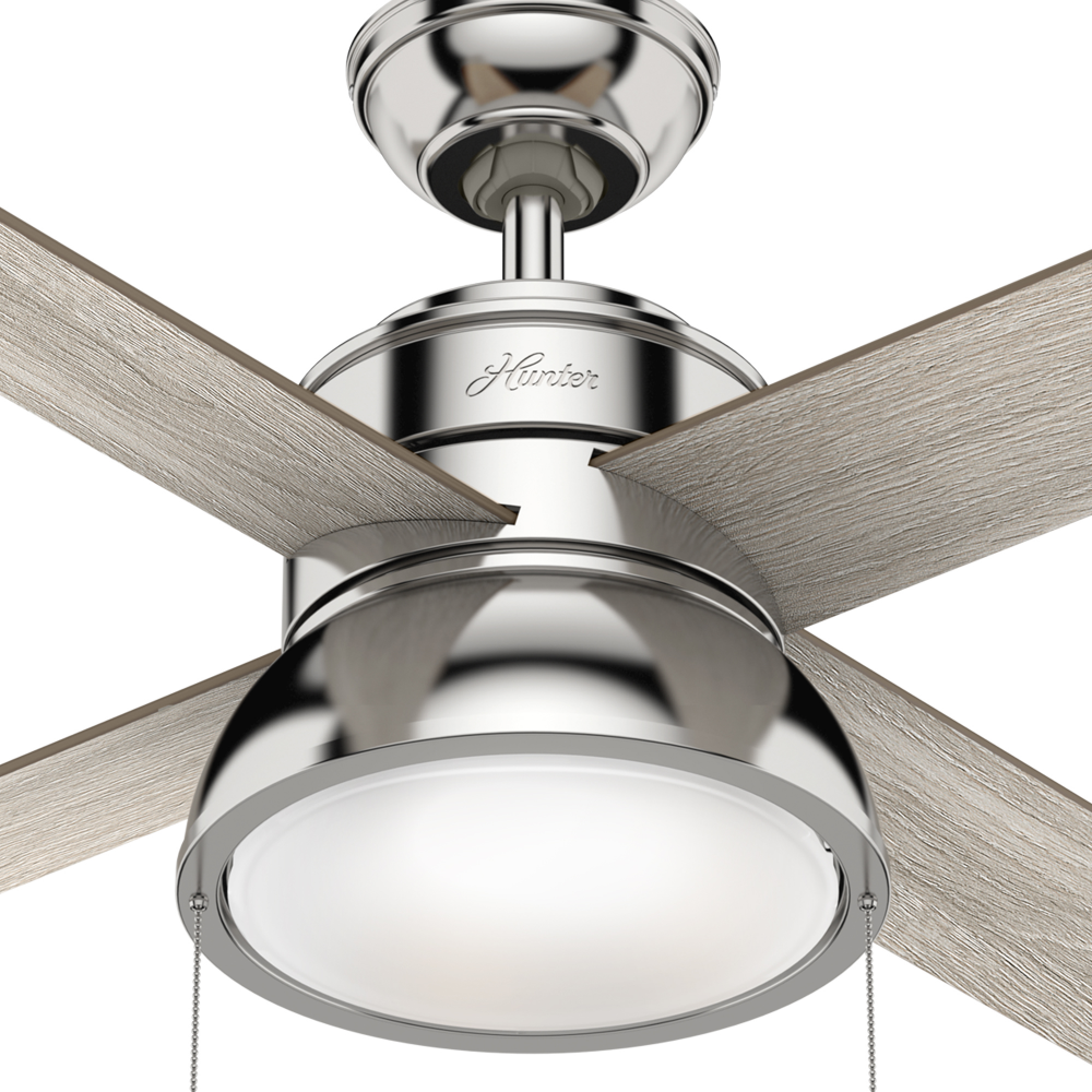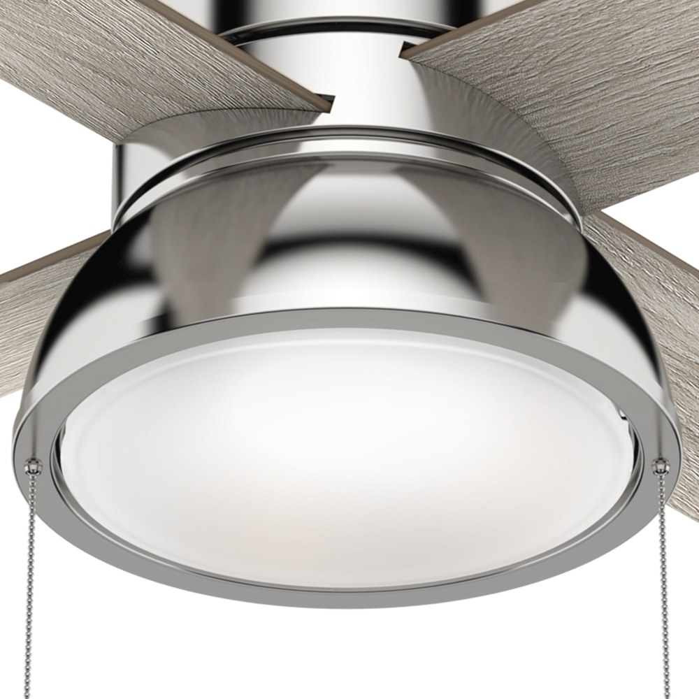 Let the Loki ceiling fan be the finishing touch to your large bedrooms, living rooms, nurseries, and home offices. This indoor ceiling fan is available in stunning finishes, including Weathered Copper and our premium Polished Nickel finish. The included pull chains make controlling the integrated LED light and three fan speeds easy. Featuring the WhisperWind? motor, you?ll get the cooling power you need with whisper-quiet performance you expect.