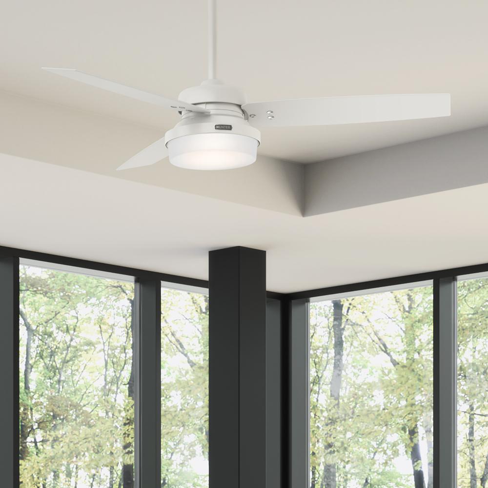 The Sentinel is a casual fan that fits seamlessly into any modern space. The simple, clean lines found throughout the design are paired with premium finish combinations to make for a delightful addition to your home decor. The 52-inch blades of this contemporary classic are powered by a reversible, three-speed WhisperWind® motor delivering ultra-powerful air movement with a whisper-quiet performance so you get the cooling power you want without the noise. This modern ceiling fan includes a handheld remote so you can adjust the dimmable, energy-efficient LED lights and three fan speeds.