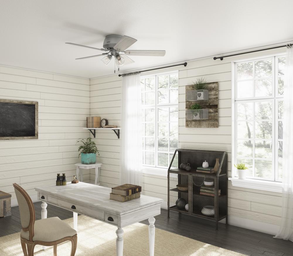 Add some contemporary style to your bedroom with the Shady Grove ceiling fan. The casual, transitional style features blades and a light kit in multiple finishes. An energy-efficient LED bulb included in the three lights can be installed in any fixture setting. The technology of our reversible, 3-speed WhisperWind® motor delivers ultra-powerful air movement with whisper-quiet performance so you get the cooling power you want without the noise you don’t™.