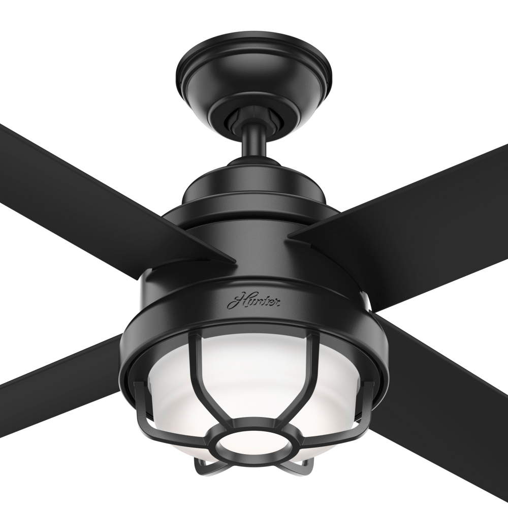 As a part of Hunter?s WeatherMax? Collection, the Searow outdoor ceiling is Engineered for the Elements?. It's wet rated as well as corrosion and salt-air resistant, making it great for outdoor spaces directly exposed to the elements. The pre-installed control receiver makes installation simple, and it?s pre-paired to the included wall control so you?re ready to use the fan. The lantern inspired ceiling fan completes the look of modern farmhouse and coastal style spaces.