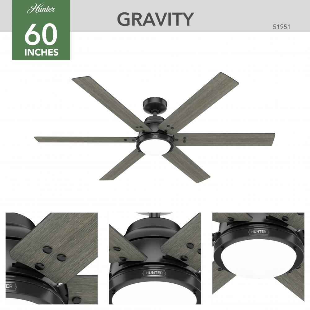 The Sleek design of the Gravity 60-inch fan with LED light is perfect for your living room or bedroom. Your style will shine with its subtle design style and selection of colors and finishes. The Gravity also puts the power of cool in your hands with the smart home HunterSMART™, formerly known as SIMPLEconnect®, Wi-Fi® technology. Cool your days and brighten the nights with the Gravity ceiling fan.
