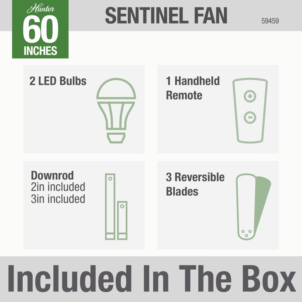 The Sentinel is a casual fan that fits seamlessly into any large, modern space. The simple, clean lines found throughout the design are paired with premium finish combinations to make for a delightful addition to your home decor. The 60-inch blades of this contemporary classic are powered by a reversible, three-speed WhisperWind? motor delivering ultra-powerful air movement with a whisper-quiet performance so you get the cooling power you want without the noise. This modern ceiling fan includes a handheld remote so you can adjust the dimmable, energy-efficient LED lights and three fan speeds.