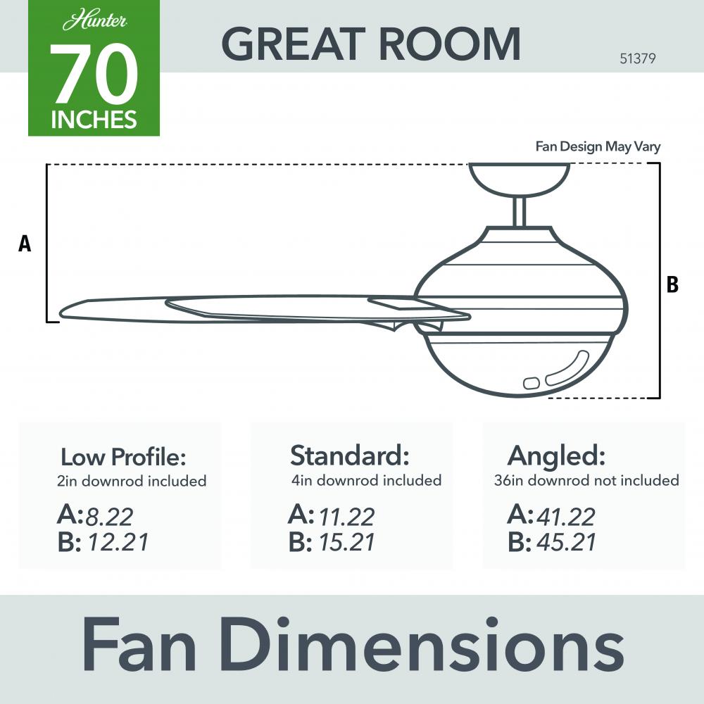 GREAT ROOM FAN: Ideal size for great rooms, open concept spaces, and lofts.