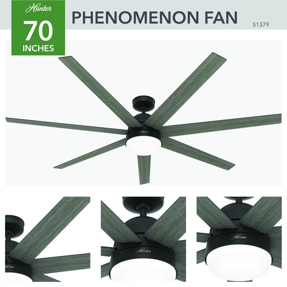 With a stunning design with a large blade span and modern technology -- this fan’s name is well deserved. The Phenomenon is built with our HunterSMART™, formerly known as SIMPLEconnect®, Wi-Fi® technology to help you easily connect to your smart home systems like Amazon Alexa, Apple HomeKit, and Google Home. It also comes with our SureSpeed Guarantee for optimized airflow you can feel. The Phenomenon is one cool fan.