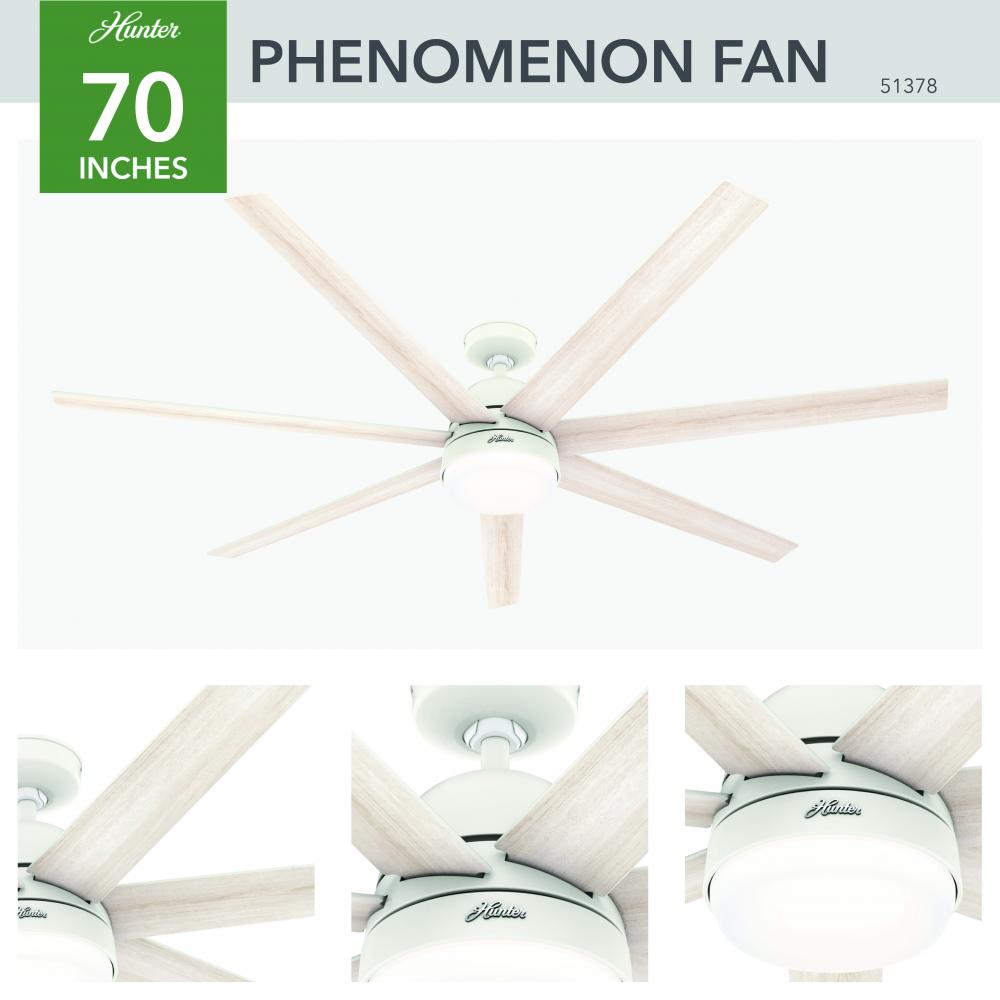 With a stunning design with a large blade span and modern technology -- this fan’s name is well deserved. The Phenomenon is built with our HunterSMART™, formerly known as SIMPLEconnect®, Wi-Fi® technology to help you easily connect to your smart home systems like Amazon Alexa, Apple HomeKit, and Google Home. It also comes with our SureSpeed Guarantee for optimized airflow you can feel. The Phenomenon is one cool fan.