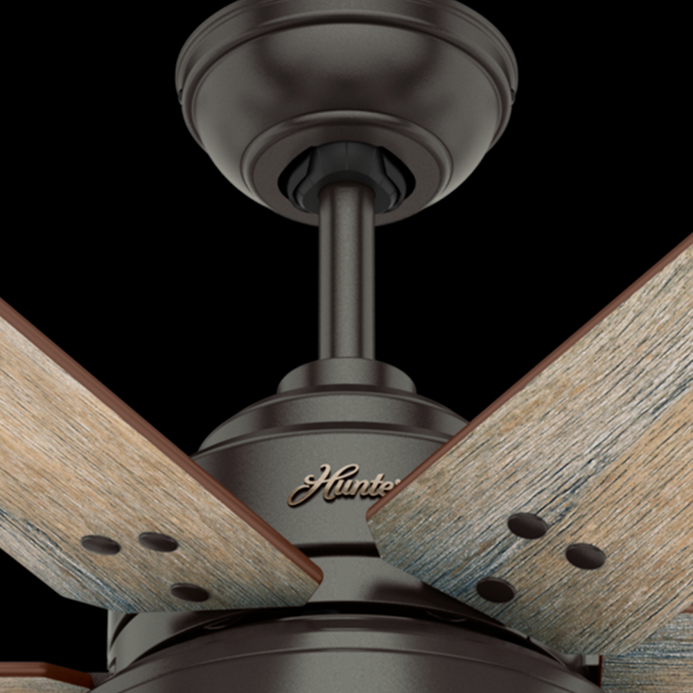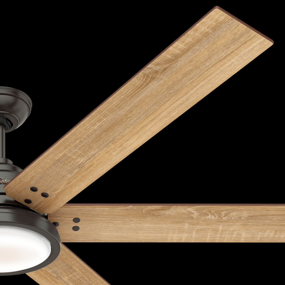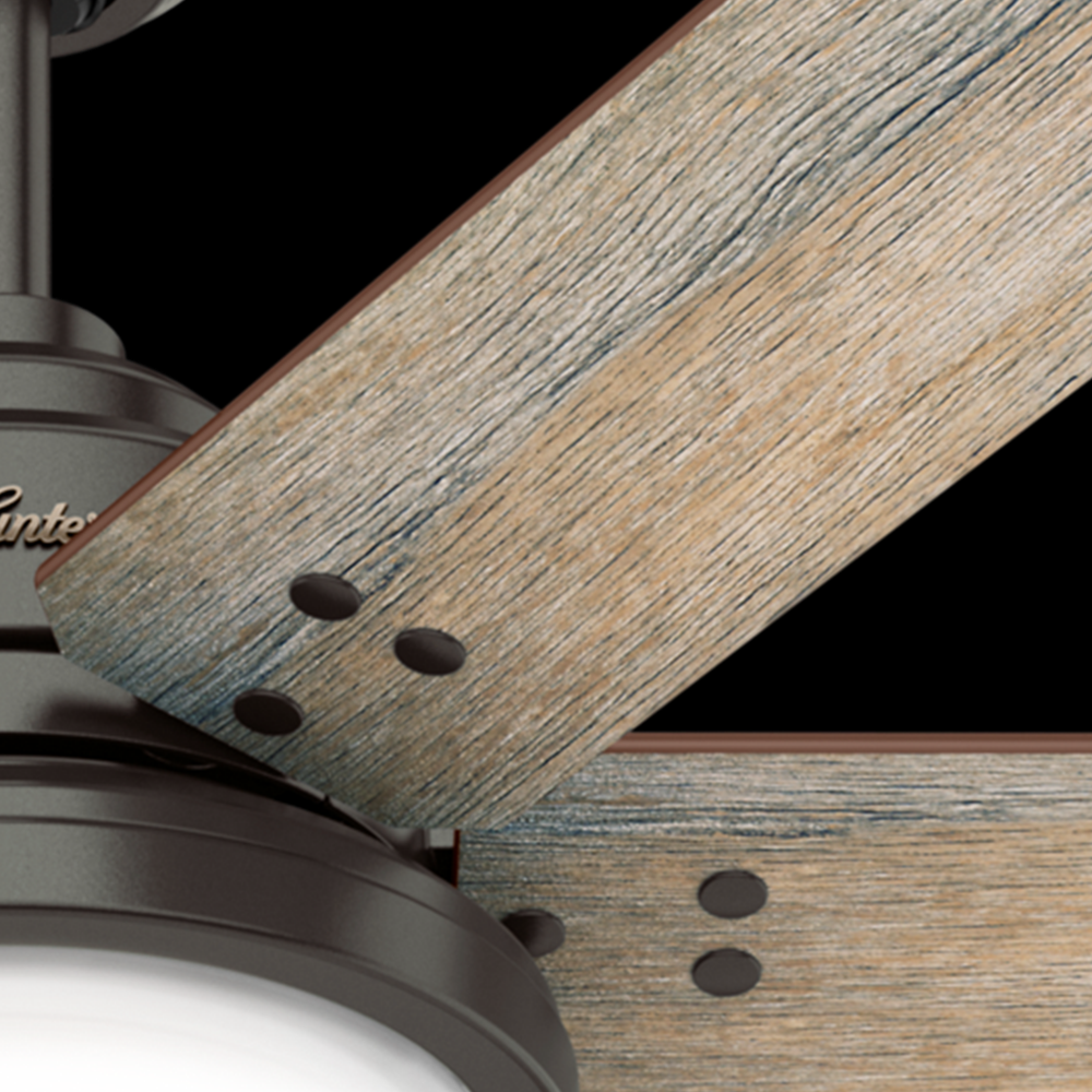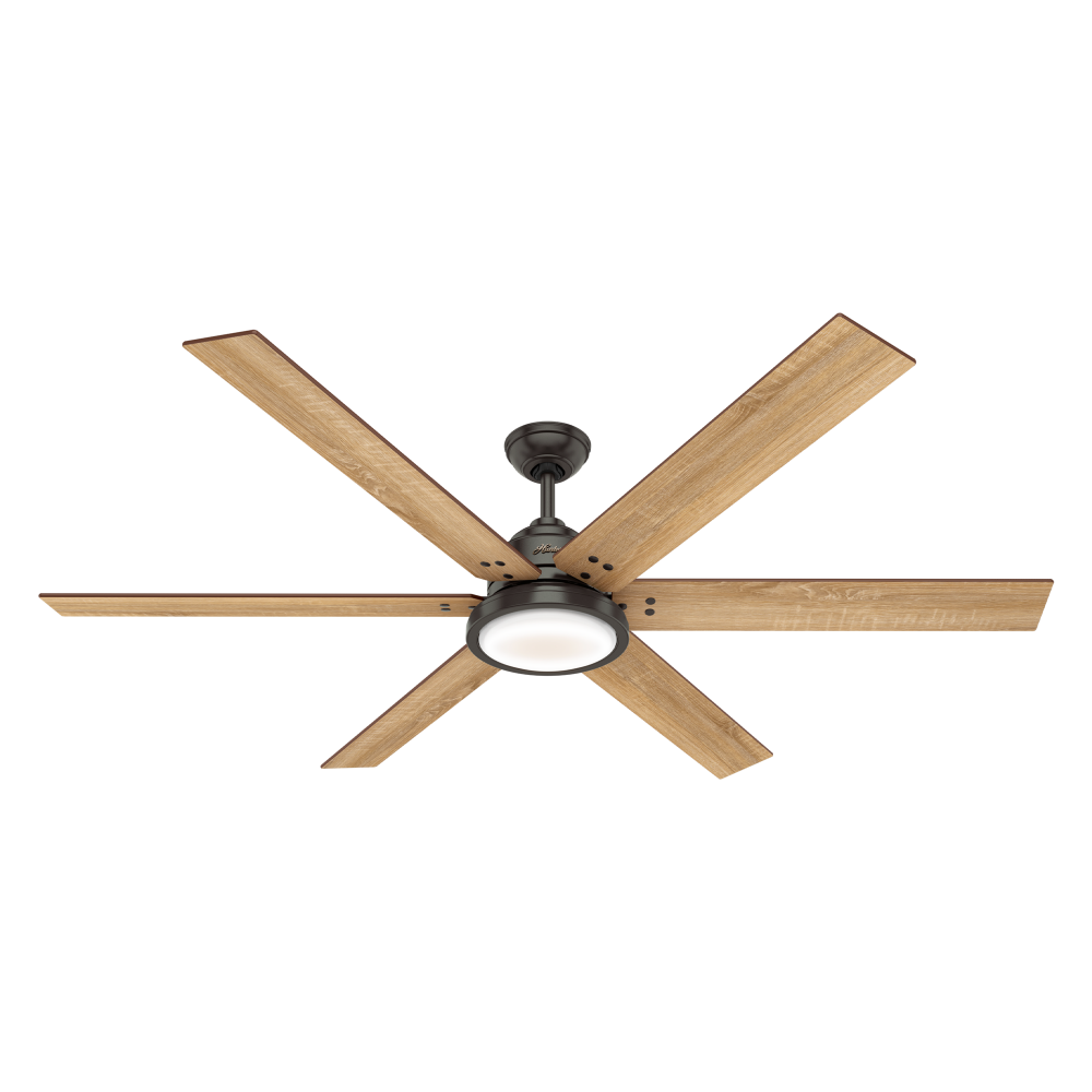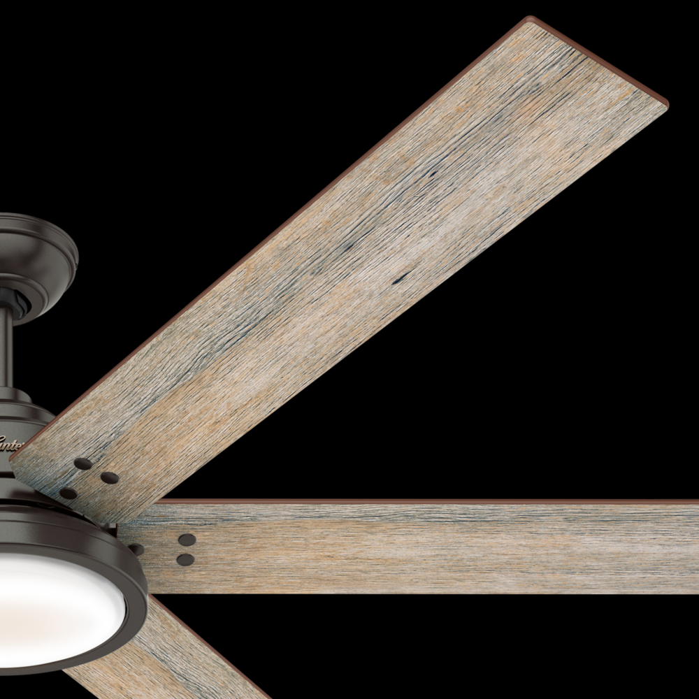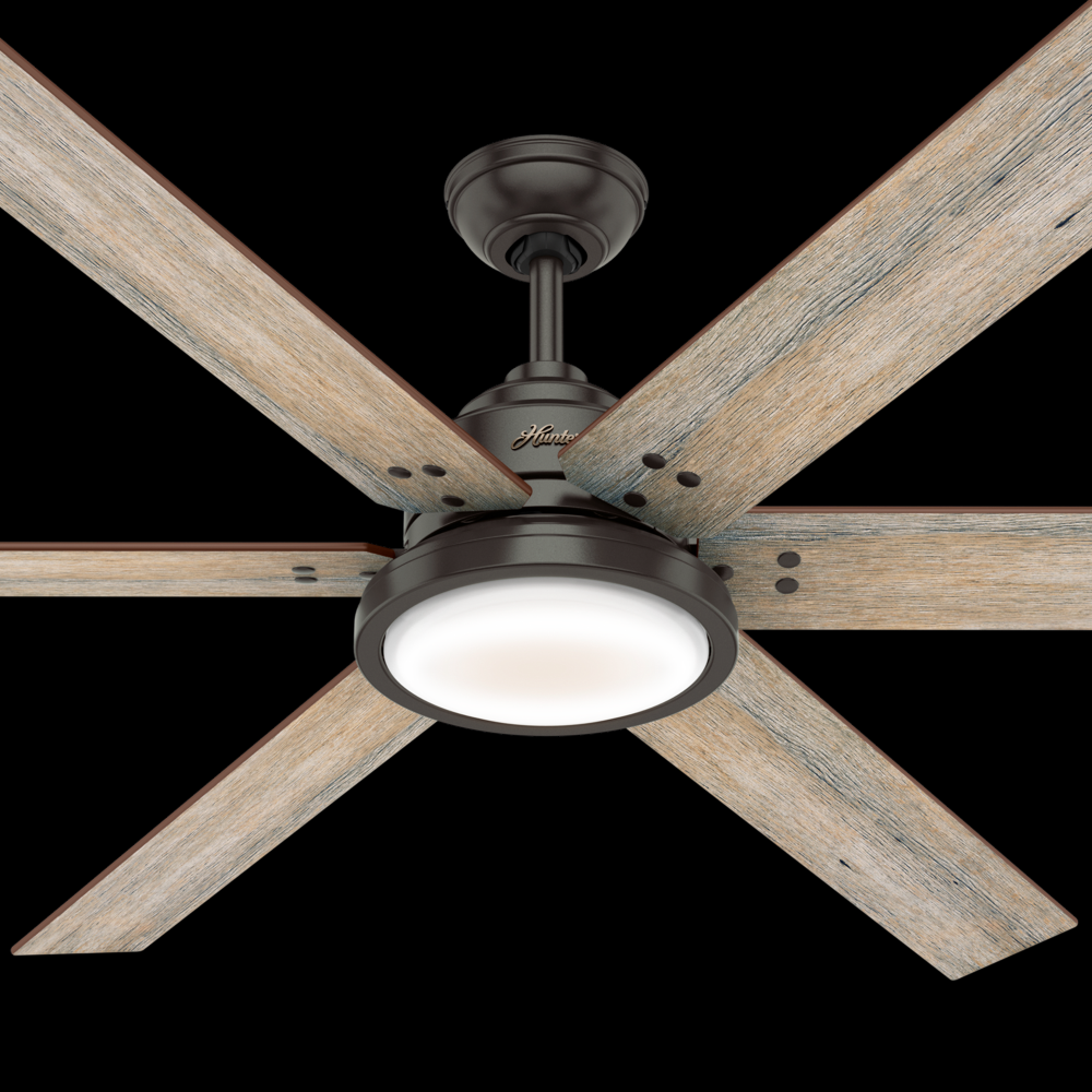 The Warrant great room ceiling fan is available in two sizes – a 60-inch ceiling fan and a 70-inch ceiling fan – to efficiently cool open-concept rooms while adding style to your decor. This farmhouse-style ceiling fan with a LED light features six reversible blades that are reminiscent of a windmill with rivet hardware attaching the blades to the housing. This ceiling fan features our new wall control with the receiver preinstalled for easy installation. Shop this rustic ceiling fan’s various finishes to find the best ceiling fan for your decor.
