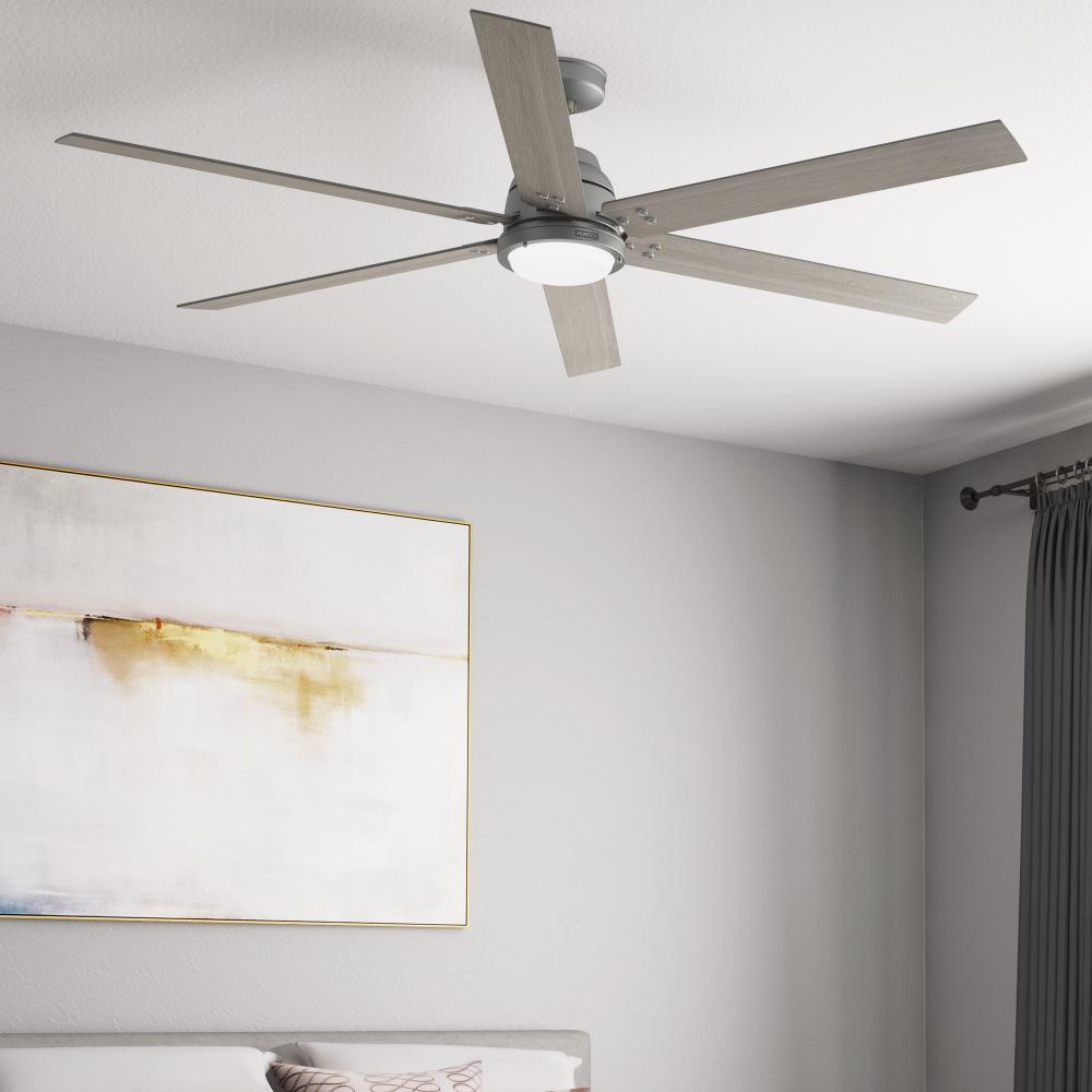 The grand design of the Gravity 72-inch fan with LED light is an excellent choice for your great room. The 6-blade fan will keep you cool, and the selection of colors and finishes offers the perfect choice to suit your taste. The Gravity also puts the power of cool in your hands with the intelligent home SIMPLEconnect® technology. Cool your days and brighten the nights with the Gravity ceiling fan.