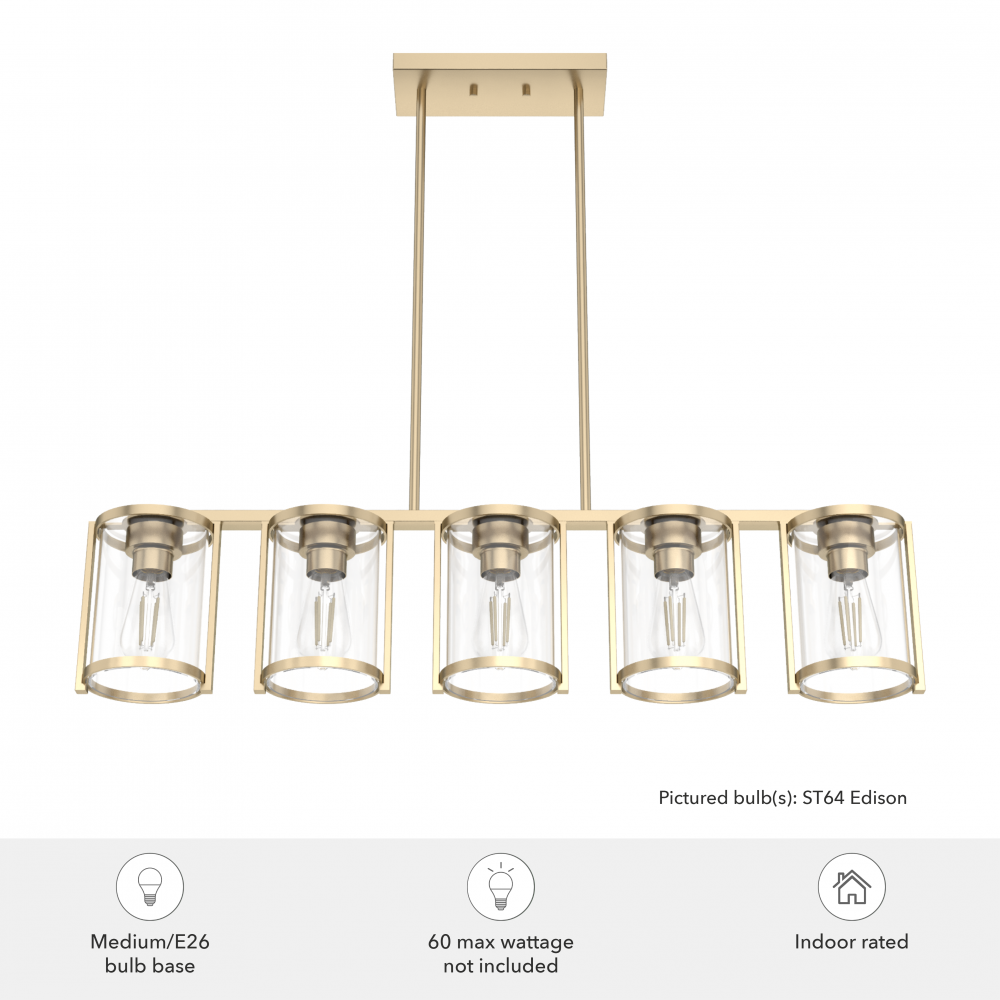 Hunter Astwood Alturas Gold with Clear Glass 5 Light Chandelier Ceiling Light Fixture