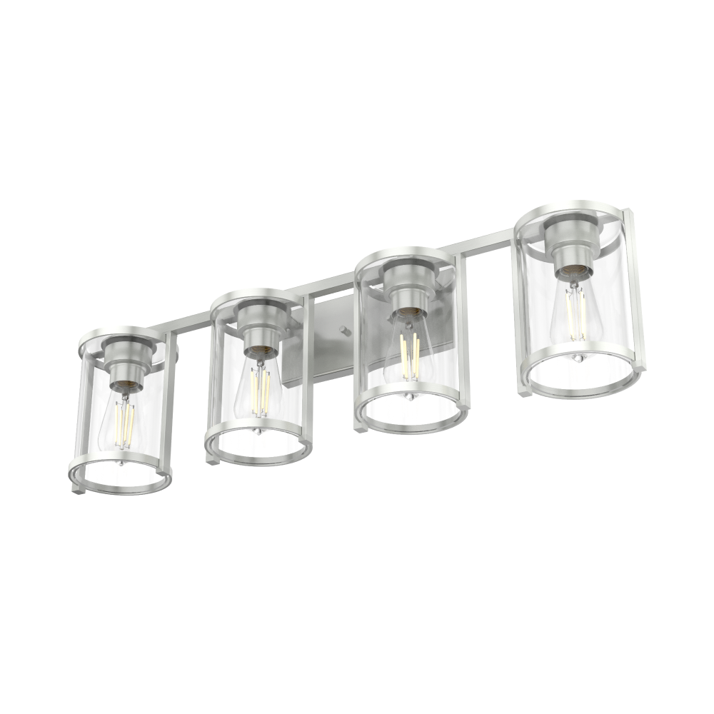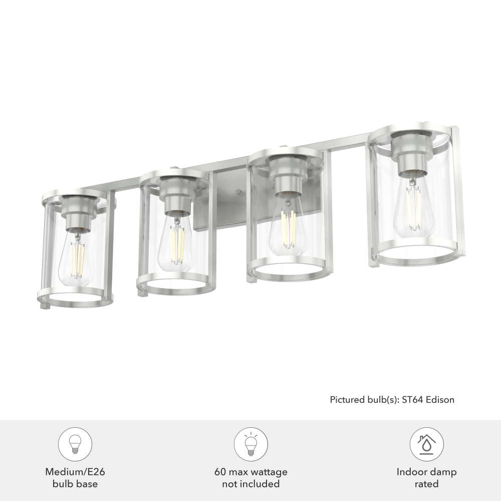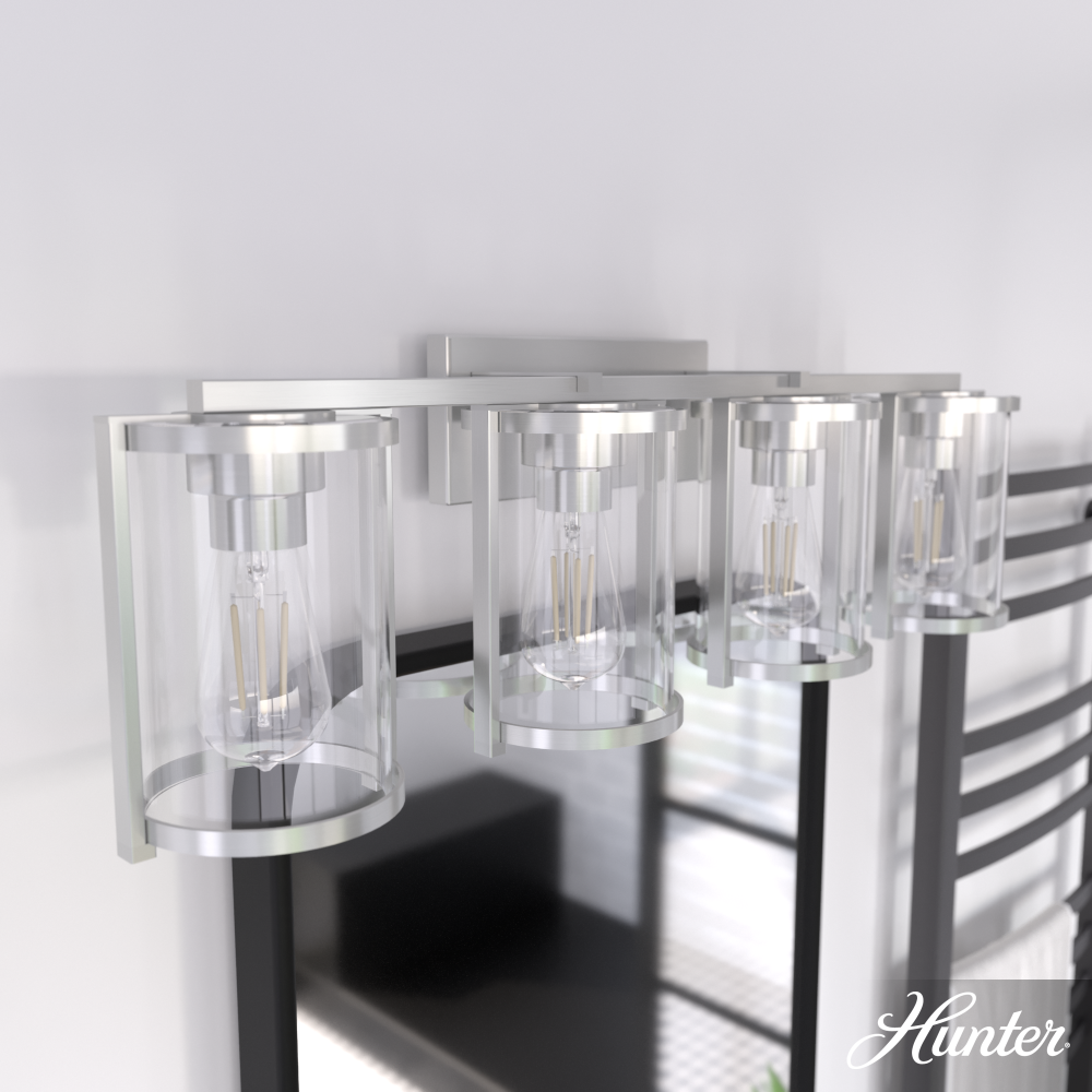 Hunter Astwood Brushed Nickel with Clear Glass 4 Light Bathroom Vanity Wall Light Fixture