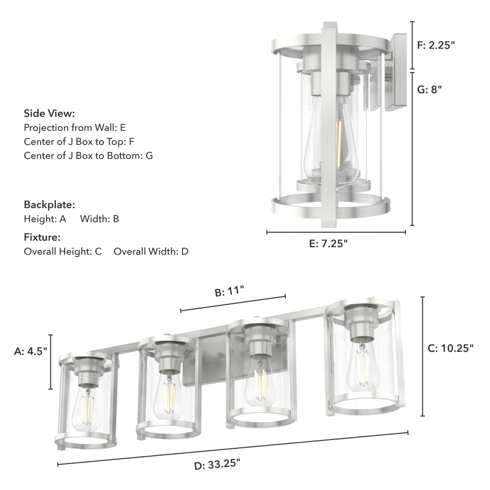Sconce/Vanity Center of J Box to Bottom:
