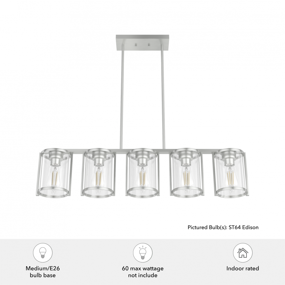 Evoking subtle art deco detailing, the Astwood linear chandelier offers an effortless and modern way to update the space in your room that needs a fresh shine. This caged modern chandelier touts a fuss-free design that has stunning simplicity, making it an easy way to elevate your room’s design. mix and match with other fixtures from this collection or from our ceiling fan designs.