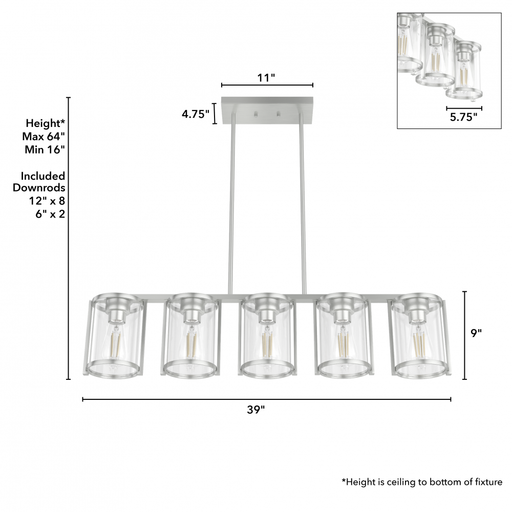 CUSTOMIZABLE HANGING OPTIONS: With the minimum required downrod, the hanging length is 16 inches. When using all of the included downrod, the maximum hanging length is 64 inches.