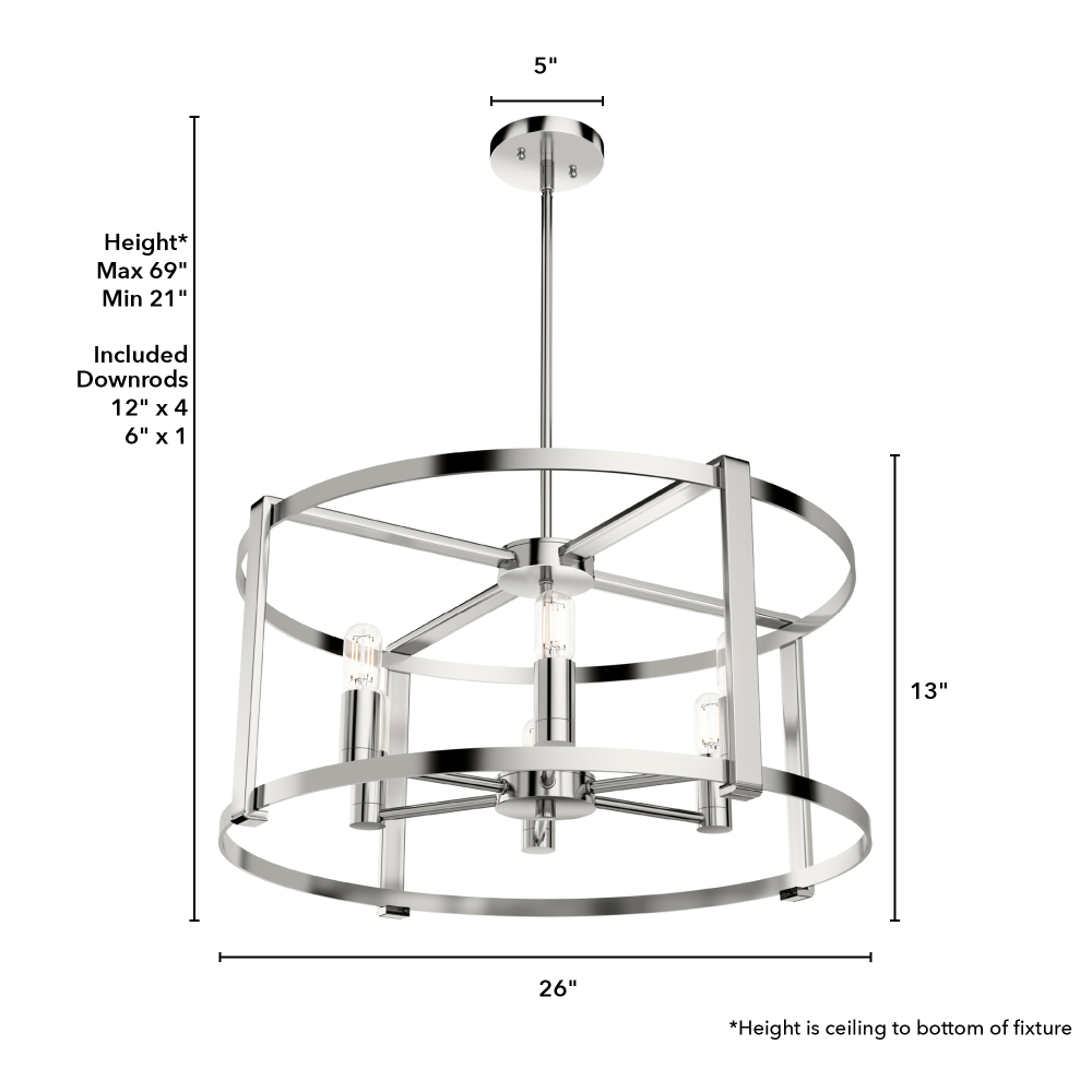 CUSTOMIZABLE HANGING OPTIONS: With the minimum required downrod, the hanging length is 21 inches. When using all of the included downrod, the maximum hanging length is 69 inches.