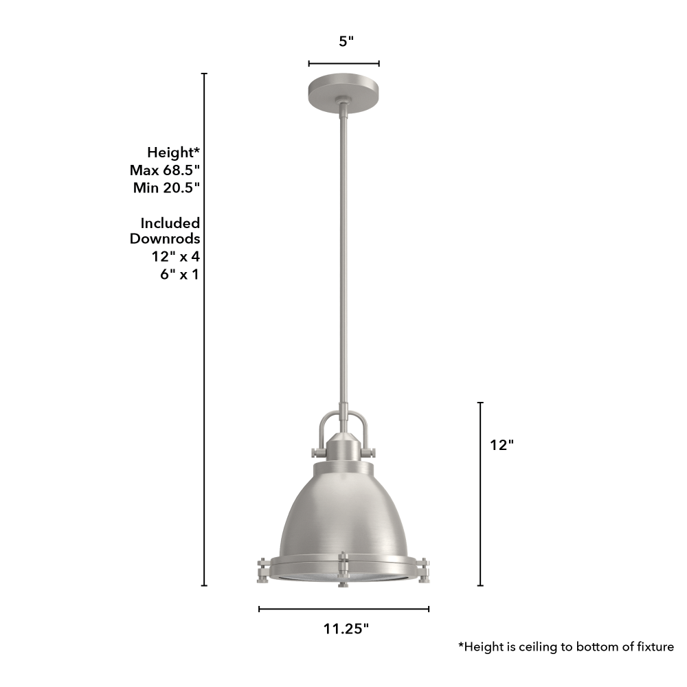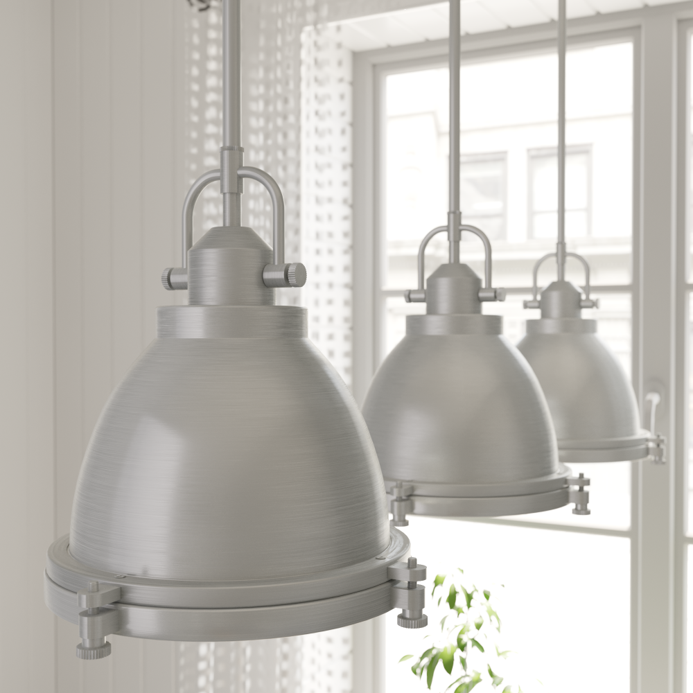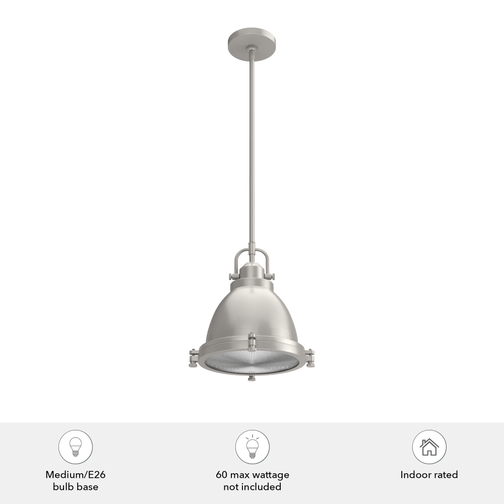 The Bridgemoor pendant light’s authentic design is what your modern industrial and farmhouse-style spaces demand. The rustic hardware detailing gives this modern industrial pendant light a warm aesthetic. The dome shape is accented by clear, holophane glass that creates a stunning effect and ample light output. Mix and match with other fixtures from this collection or from our ceiling fan designs.