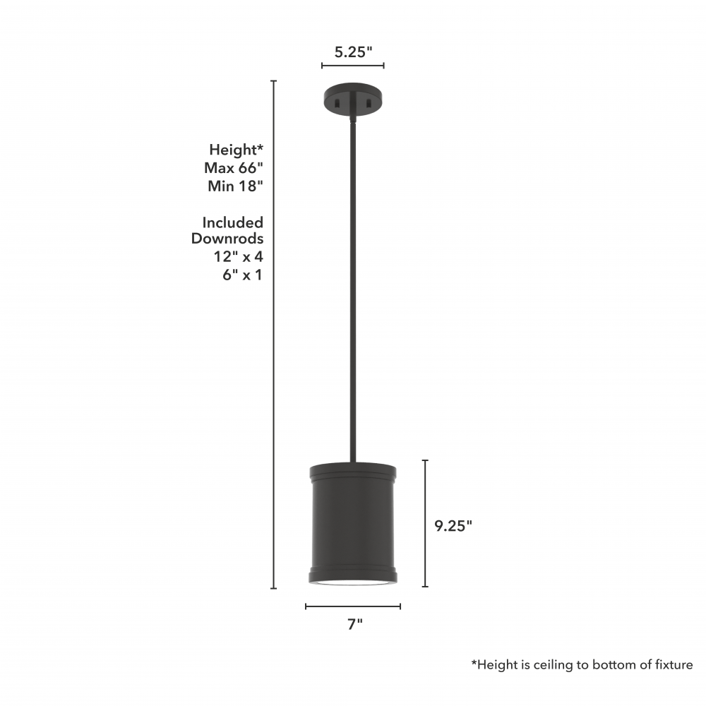 CUSTOMIZABLE HANGING OPTIONS: With the minimum required downrod, the hanging length is 18 inches. When using all of the included downrod, the maximum hanging length is 66 inches.