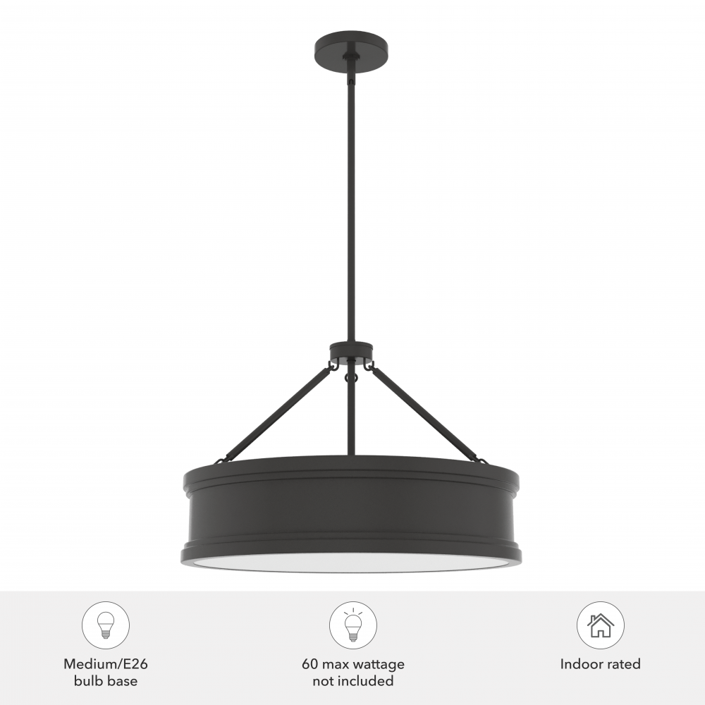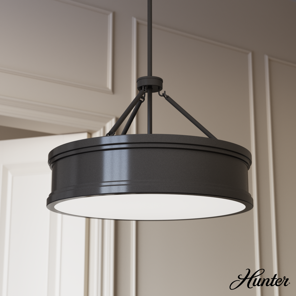 The Capshaw pendant light is a captivating fixture from our Hunter Lighting collection. Outfitted with multiple lights in a sleek drum setting, the Capshaw beautifully balances modern style with a classic sensibility, creating a new traditional accent piece that easily complements most design schemes. Uplift your living room, dining room, or entryway with the Capshaw pendant. Mix and match with other fixtures from this collection or from our ceiling fan designs.