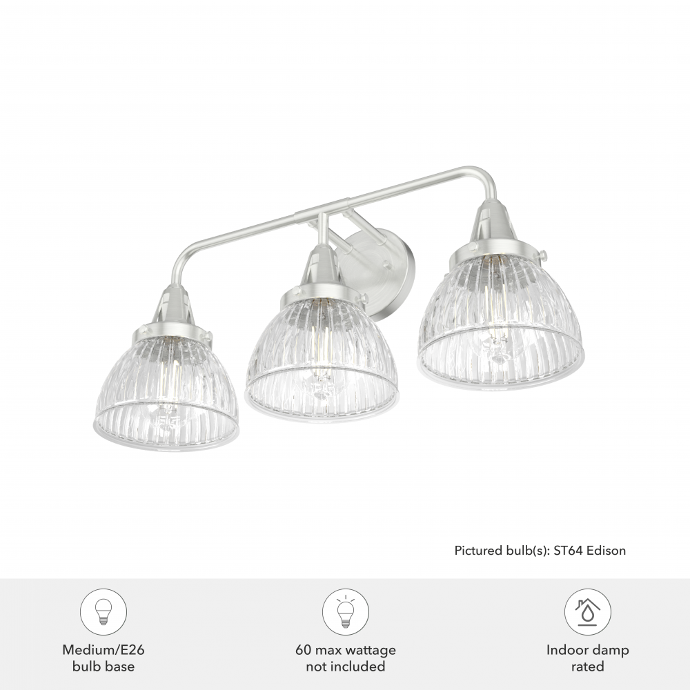 An antique look with industrial details. The Cypress Grove vanity is an elegant twist on modern industrial lighting. This modern vanity light boasts fluted glass detailing and an indoor damp rating, making it a wonderful addition to spaces exposed to moisture, like bathrooms. Carry this industrial theme throughout your space by pairing this vanity light with other Cypress Grove fixtures.
