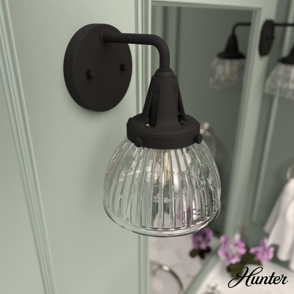 Hunter Cypress Grove Natural Black Iron with Clear Holophane Glass 1 Light Sconce Wall Light Fixture