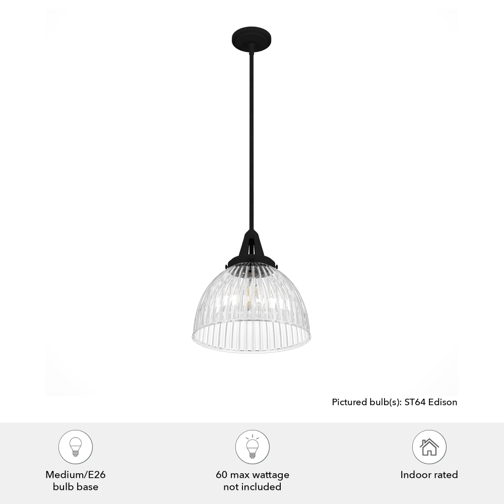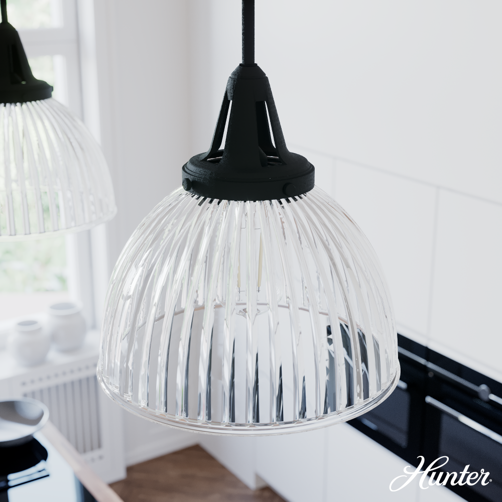 Hunter Cypress Grove Natural Black Iron with Clear Holophane Glass 1 Lt Pendant Ceiling Lt Fixture