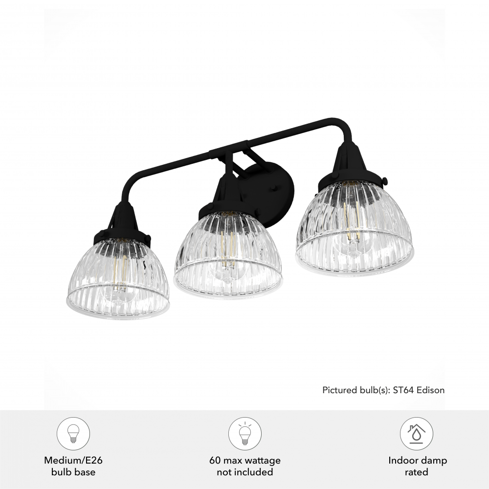 An antique look with industrial details. The Cypress Grove vanity is an elegant twist on modern industrial lighting. This modern vanity Lt boasts fluted glass detailing and an indoor damp rating, making it a wonderful addition to spaces exposed to moisture, like bathrooms. Carry this industrial theme throughout your space by pairing this vanity Lt with other Cypress Grove fixtures.