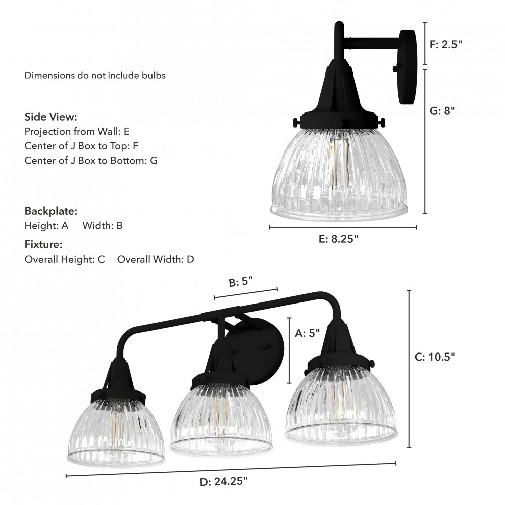 BULB RECOMMENDATION: Maximum 60 W per Lt bulb or equivalent LED bulb. Bulbs not included.