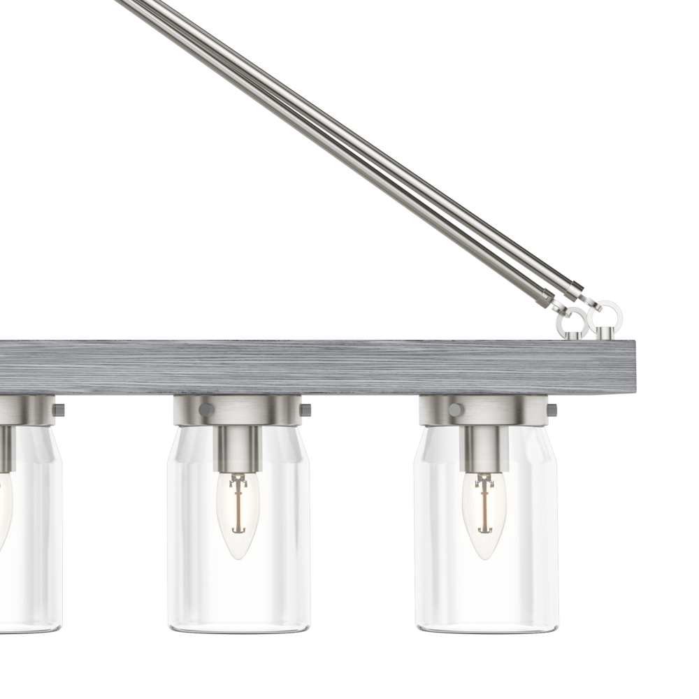 A vintage flair that deserves all the fuss, but isn't fussy. Simply stunning, the Devon Park linear chandelier’s rustic wood finishes and ball jar-inspired glass shades create a look perfect for rustic and farmhouse-style spaces. Pair with vintage LED Edison bulbs for an authentic, inviting look. Mix and match with other fixtures from this collection or from our ceiling fan designs.