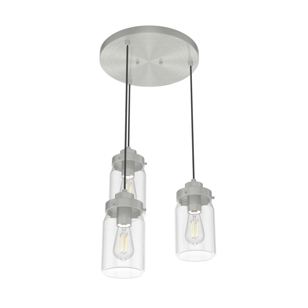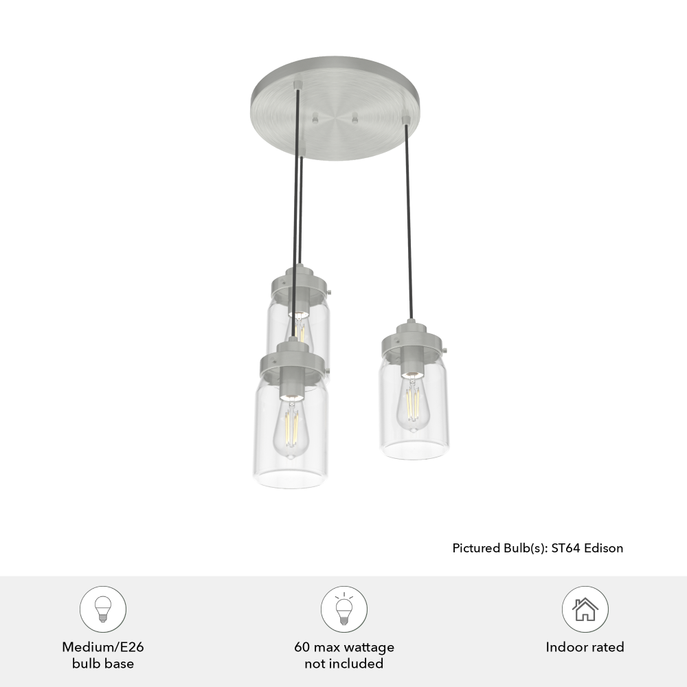 The Devon Park cluster pendant light is a charming centerpiece for your space. With a round base and three adjustable pendant lights, the Devon Park’s ball jar inspired glass shades cascade beautifully at varying heights. Add Edison LED bulbs to create a warm, inviting glow.