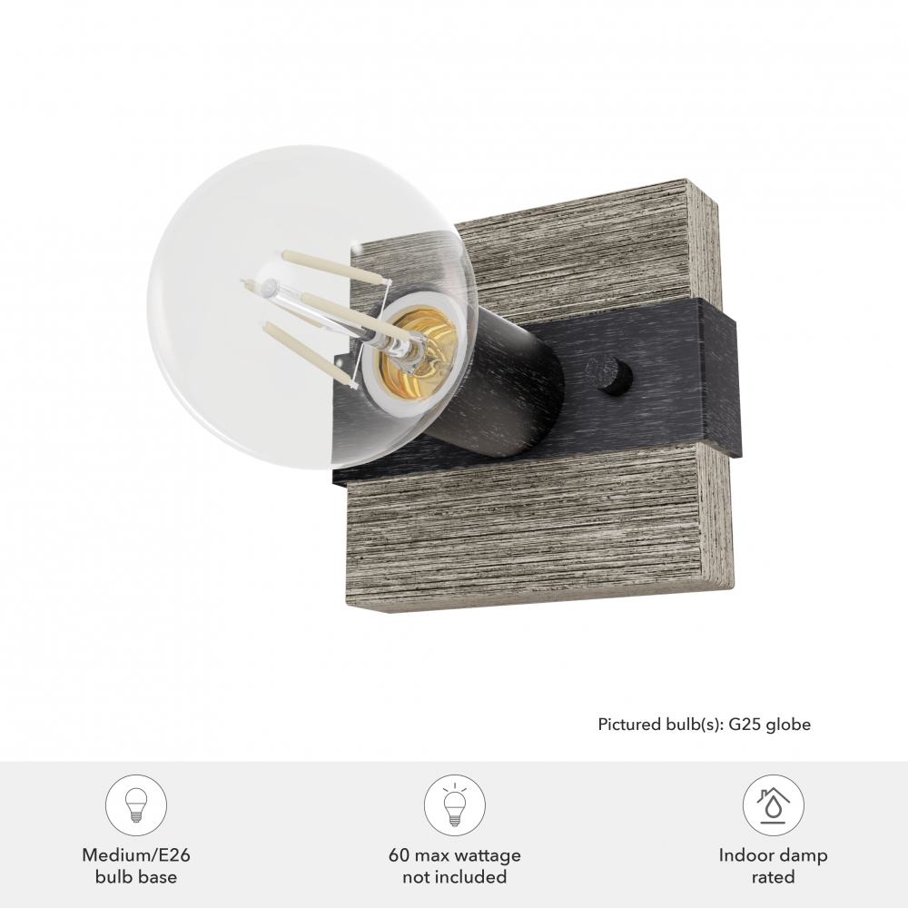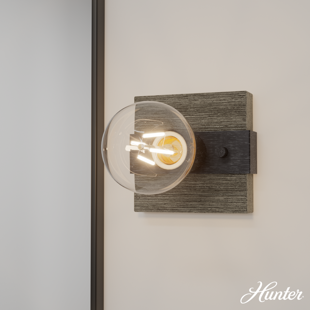 Hunter Donelson Brushed Iron and Barnwood 1 Light Small Sconce Wall Light Fixture