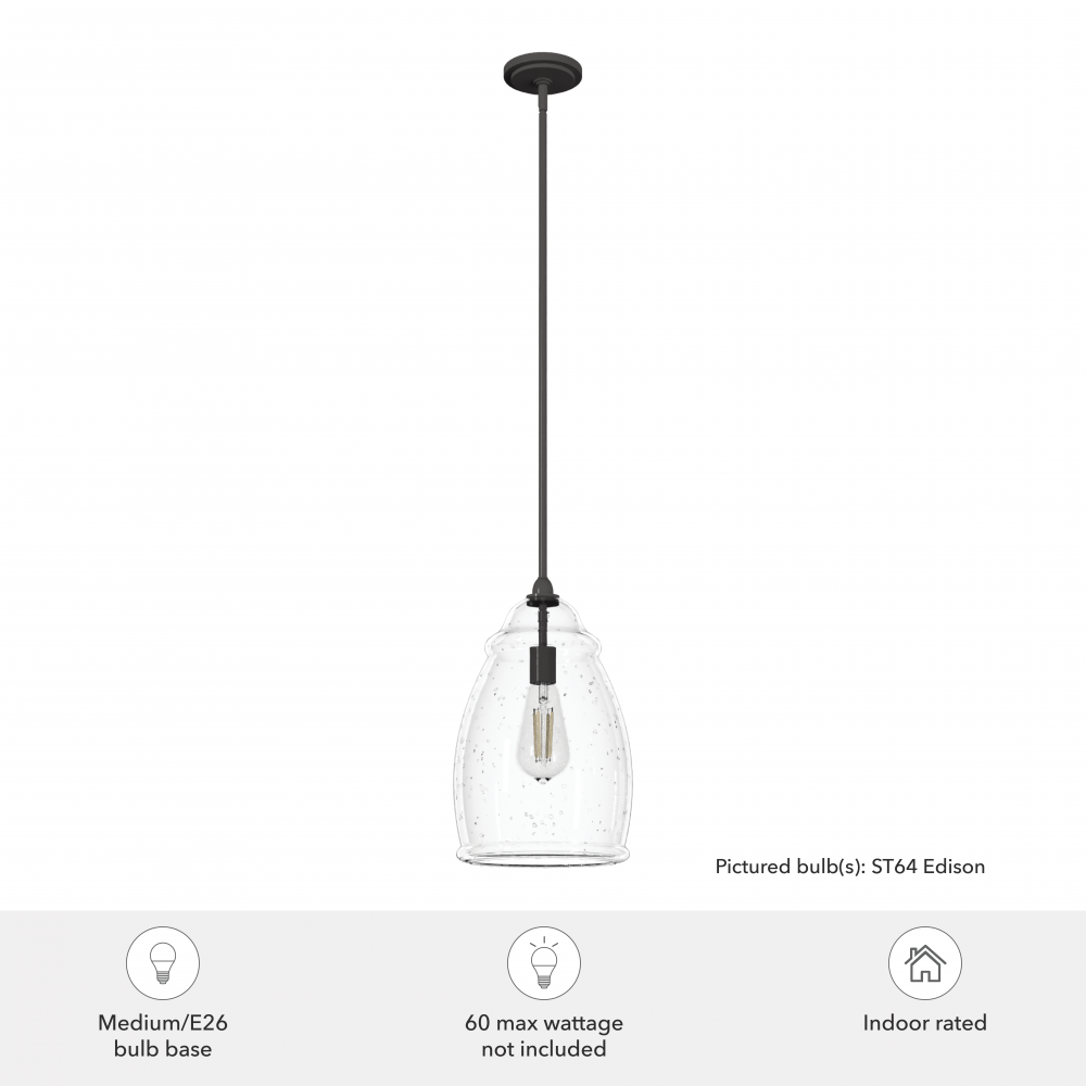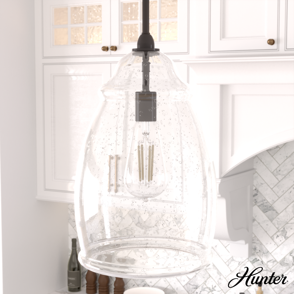 Design to suit any style. The Dunshire pendant creates a warm and inviting look in any space. The perfect pendant for the foyer, dining room or kitchen. The organic round shape of the clear seeded glass adds a touch of relaxed sophistication to any gathering. Mix and match with other fixtures from this collection or from our ceiling fan designs.