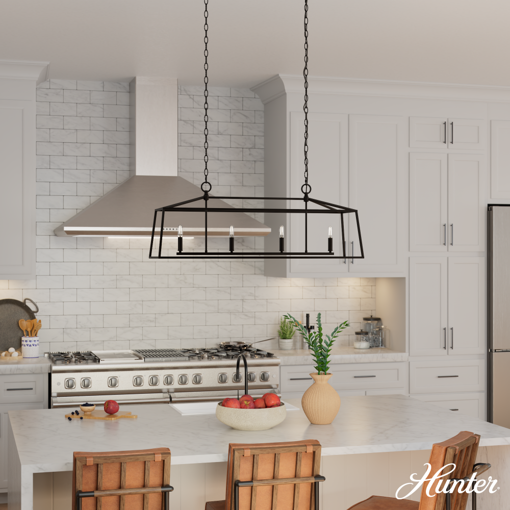 Hunter Fair Oaks Matte Black 4 Light Medium Chandelier Ceiling Light Fixture