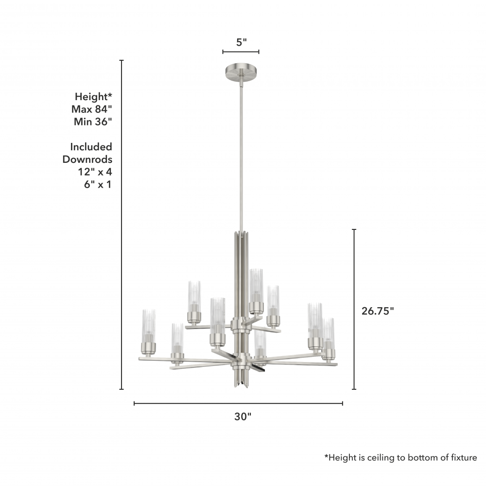 CUSTOMIZABLE HANGING OPTIONS: With the minimum required downrod, the hanging length is 36 inches. When using all of the included downrod, the maximum hanging length is 84 inches.