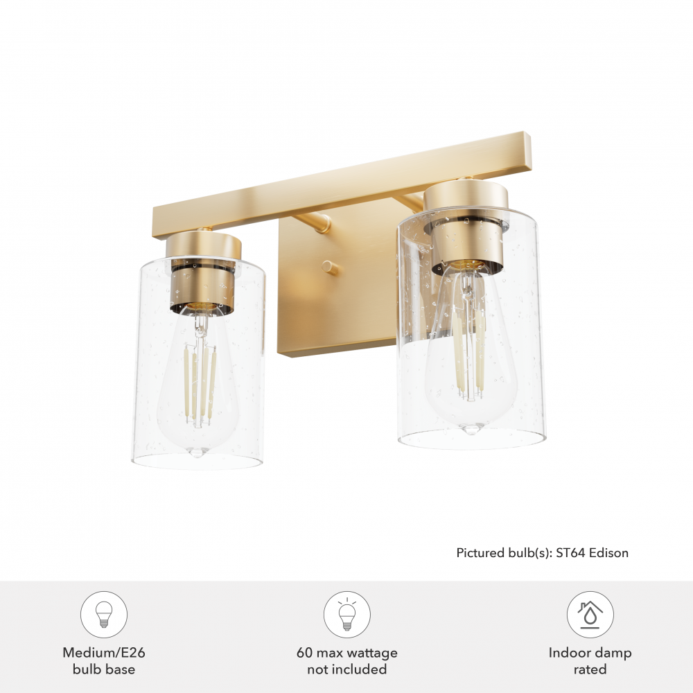 Hunter Hartland Alturas Gold with Seeded Glass 2 Light Bathroom Vanity Wall Light Fixture