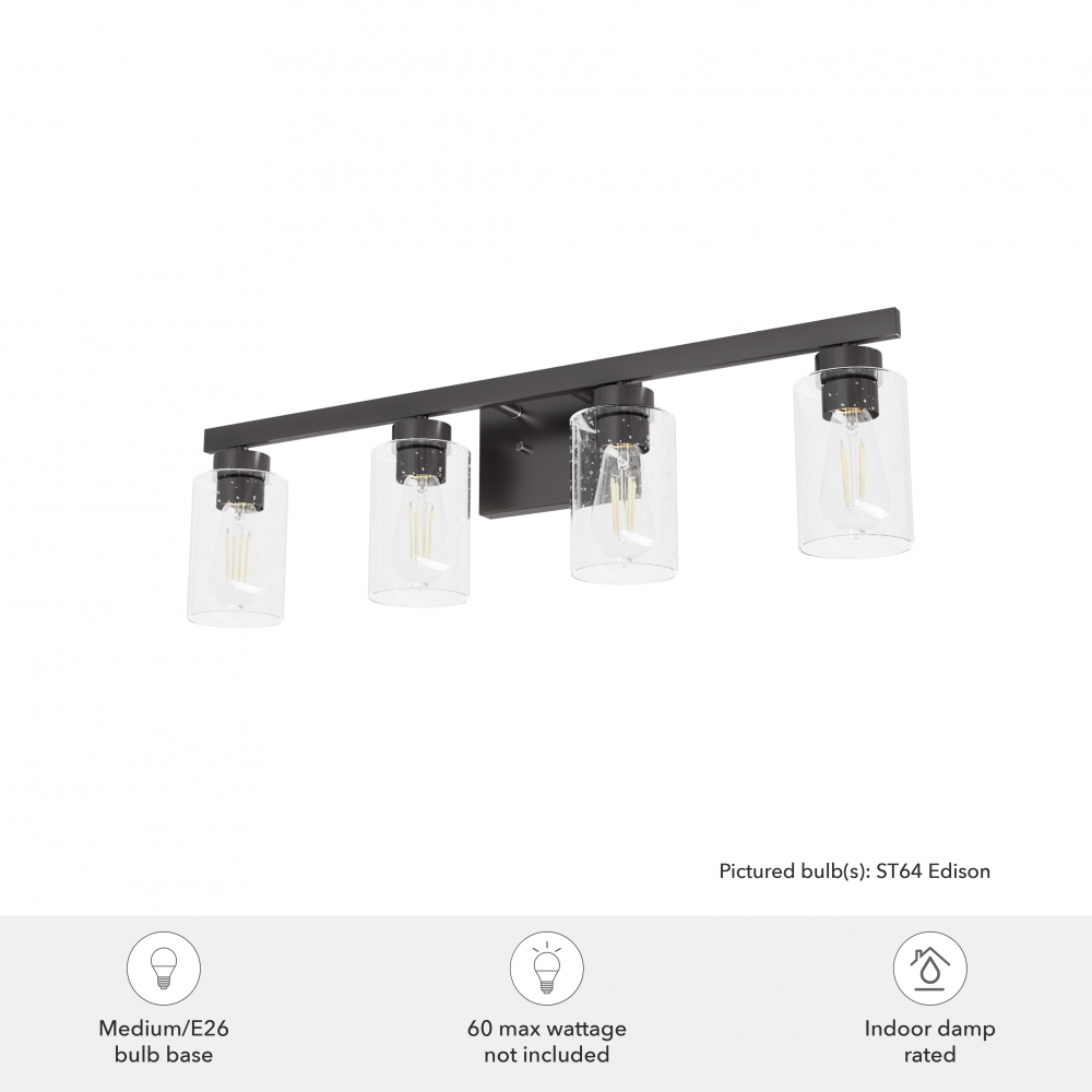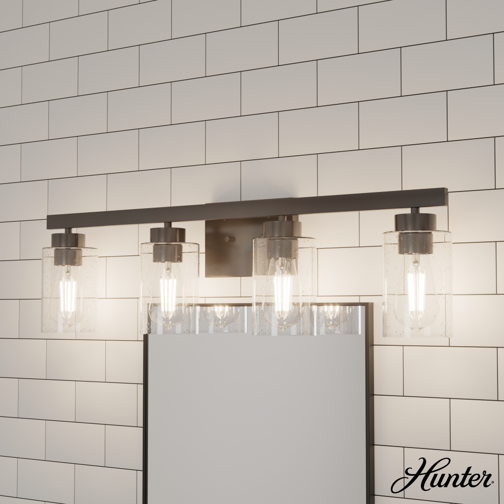 Hunter Hartland Noble Bronze with Seeded Glass 4 Light Bathroom Vanity Wall Light Fixture