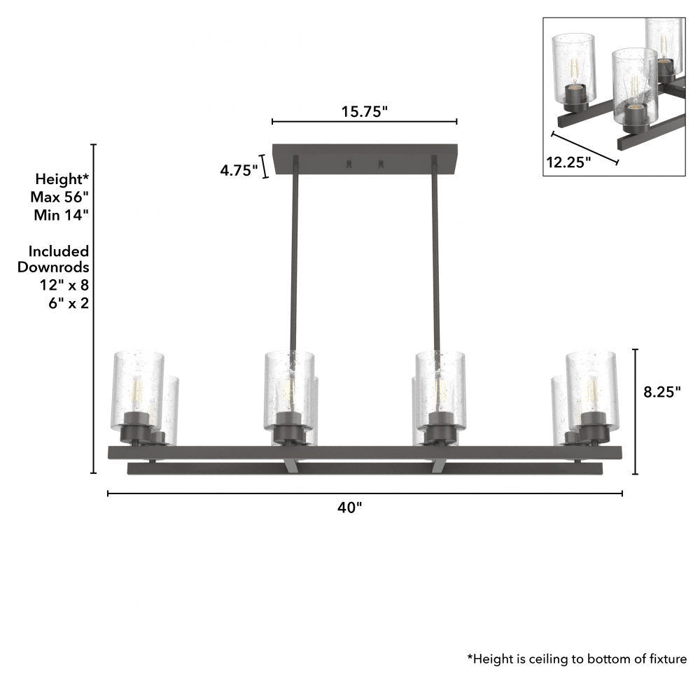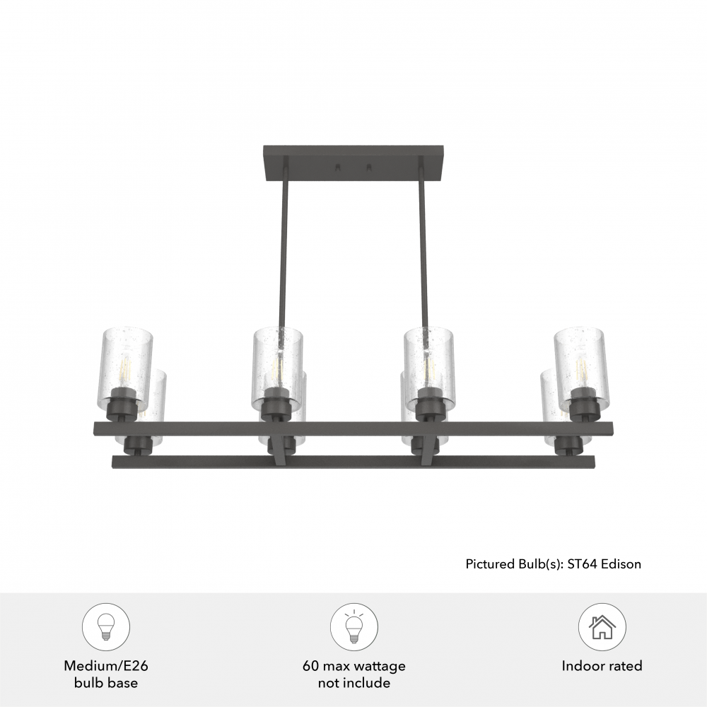 Simple form. Eye-catching detail. Designers gave the Hartland linear chandelier clean lines, which lends the focus to the stunning clear seeded glass. It creates a brilliant effect whether it’s from the sun streaming through or the warm glow of an Edison LED bulb. The perfect addition to our popular Hartland lighting collection.