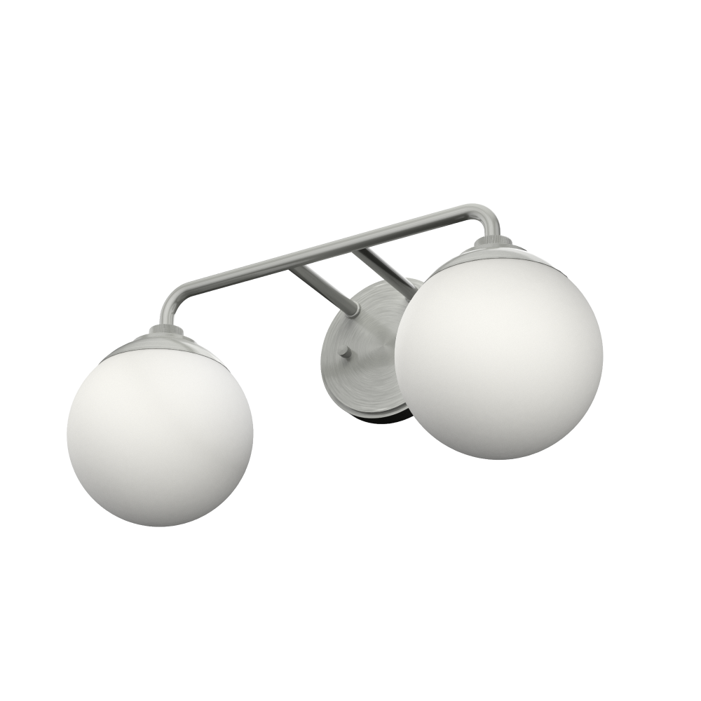 Big style for small spaces. The Hepburn modern vanity light blends the grandness of 1920 theaters with the retro, geometric forms of mid-century modern design. A simple design with beautiful finishes and a cased white glass – the simplest things can make the biggest impact. Mix and match with other fixtures from this collection or from our ceiling fan designs.