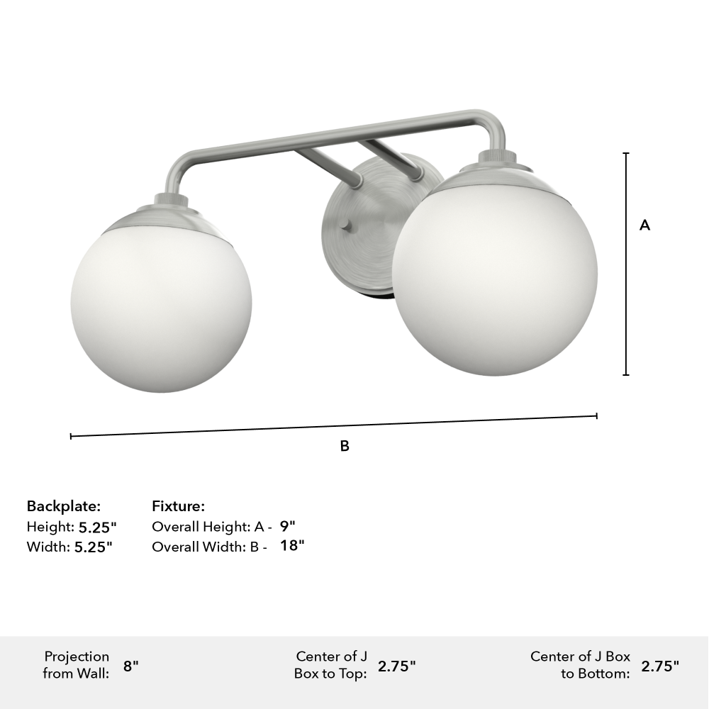 Big style for small spaces. The Hepburn modern 2-light vanity light blends the grandness of 1920 theaters with the retro, geometric forms of mid-century modern design. A simple design with beautiful finishes and a cased white glass – the simplest things can make the biggest impact.