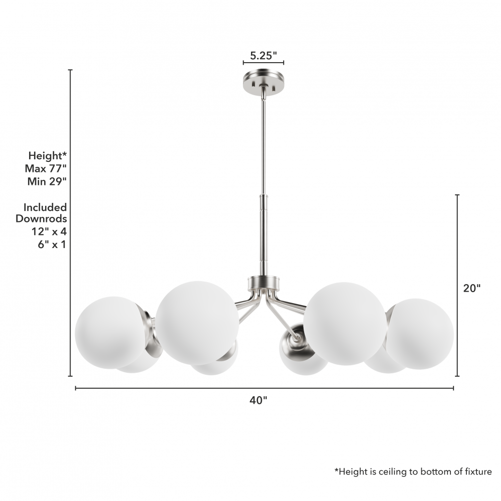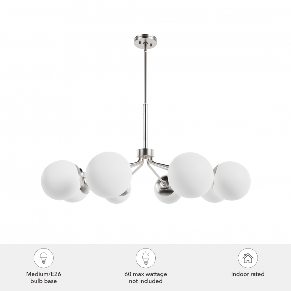 Your style is full-on glam, and you like pieces that reflect it. The Hepburn chandelier is the perfect light for you. This light is stunning with a design inspired by the glamour of old Hollywood! Eight orbs of cased-white glass will cast a flattering glow in your living room. This light offers brilliant illumination to every gathering. Add other lights from the collection for a glam look throughout.