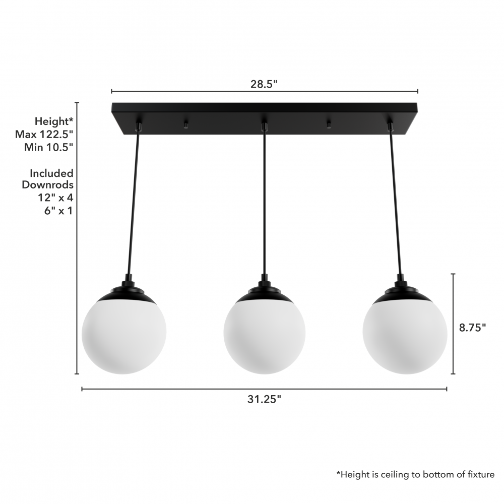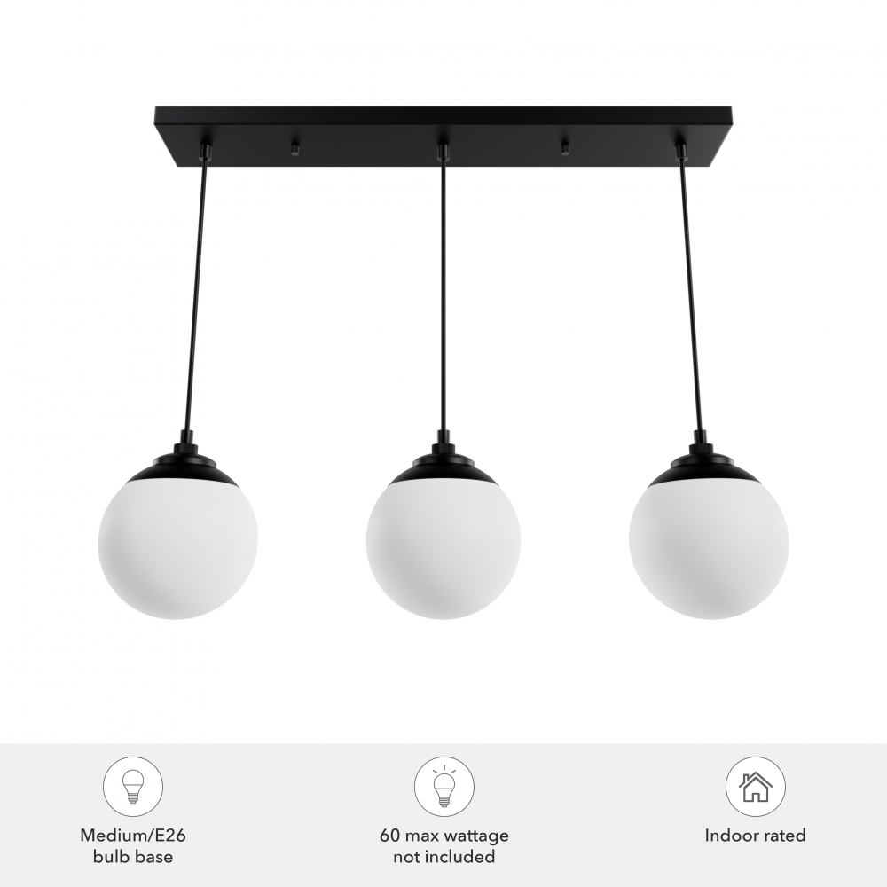 Add a touch of glamour to your dining experience with the Hepburn linear chandelier. Over your dining table or island countertop, this 1920's inspired light fixture with cased white glass orbs will brighten your nights with a lovely glow. There are finishes to suit many tastes. We are sure you will find a perfect fit with this light and other lights from the Hepburn Collection. You can also mix and match throughout your home with other Hunter collections.