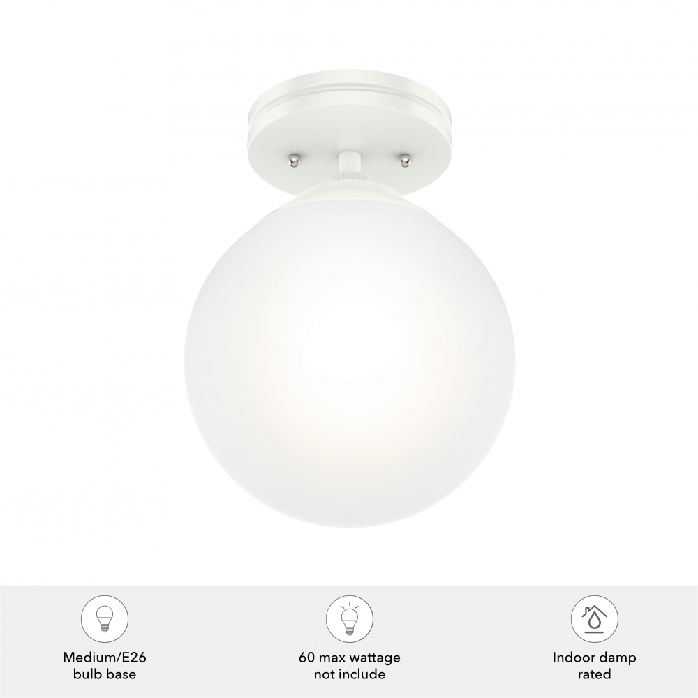 The Hepburn Collection exemplifies modern design while also capturing the essence of the 1920s. The cased white glass on this Hepburn flush mount light is inspired by old theater lighting. Pair this semi-flush mount light with the other members in the Hepburn Collection for a completed look. Mix and match with fans from our ceiling fan collections to fully finish your space.