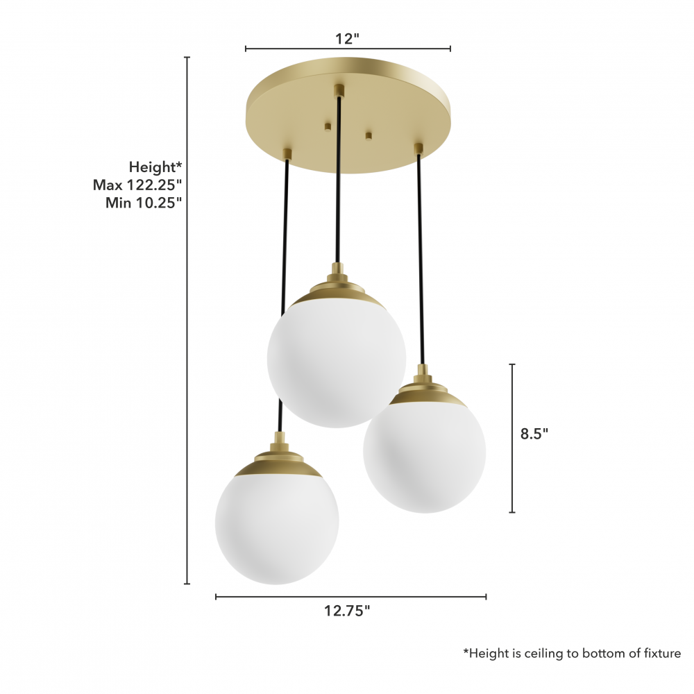 CUSTOMIZABLE HANGING OPTIONS: With the minimum required cord, the hanging length is inches. When using all of the included cord, the maximum hanging length is inches.