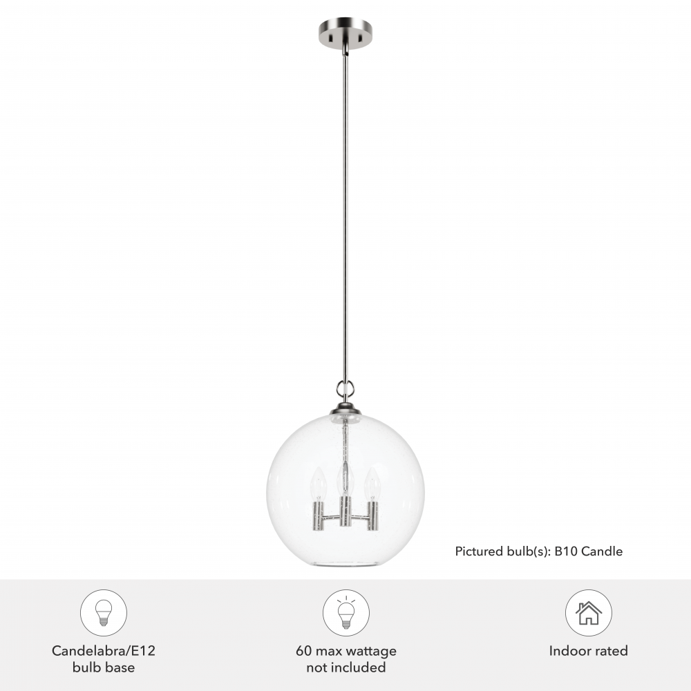 Hunter High Oaks Brushed Nickel with Clear Seeded Glass 3 Light Pendant Ceiling Light Fixture