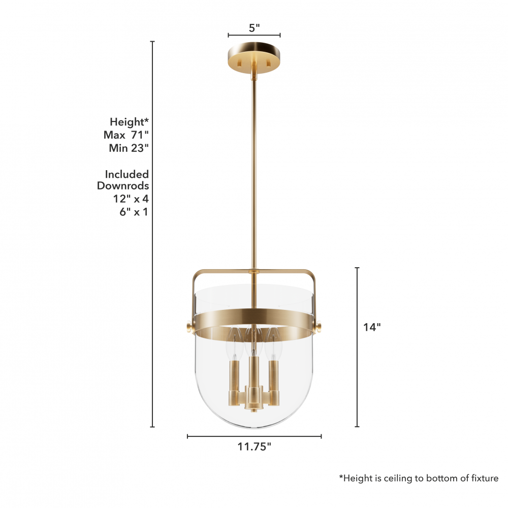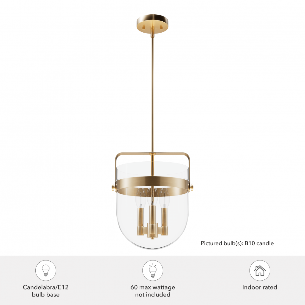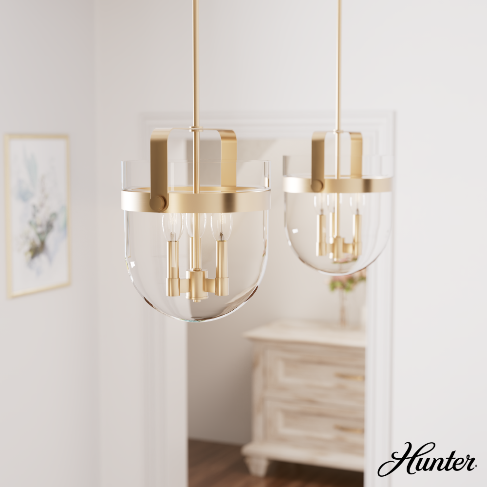 Hunter Karloff Alturas Gold with Clear Glass 3 Light Pendant Ceiling Light Fixture