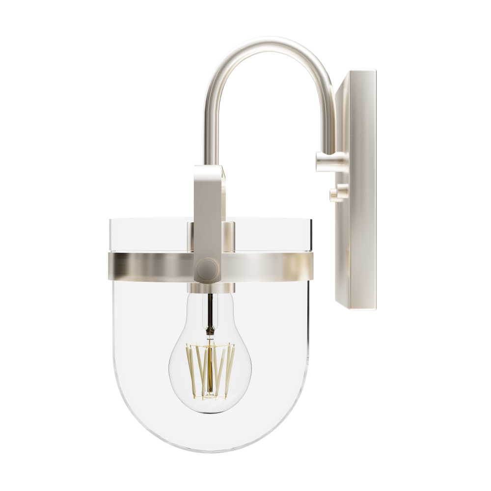 The versatile design of the Karloff sconce will brighten your space with style. From bell-shaped to Bellissimo the transitional fixture displays clear glass suspended by a metal frame that works with any color scheme with ease. Get all the fixtures from the Karloff collection and your home will shine with all the bells and whistles. Mix and match with other fixtures from this collection or from our ceiling fan designs.