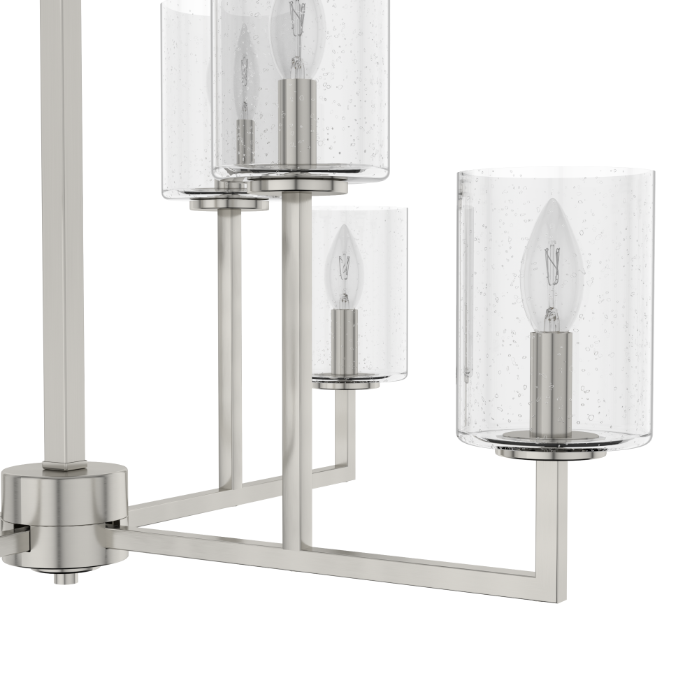 The Kerrison chandelier is a fantastic accessory to refresh the lighting in your home. Imagine dining under the light of this eye-catching chandelier. Our designers have combined metal and glass to construct this geometric showstopper. Clean lines and clear glass shades make this fixture great for transitional decor. Mix and match with other fixtures from this collection or from our ceiling fan designs.