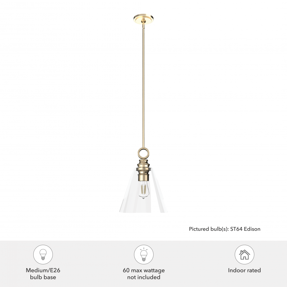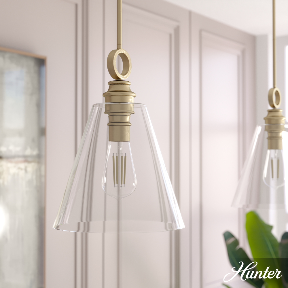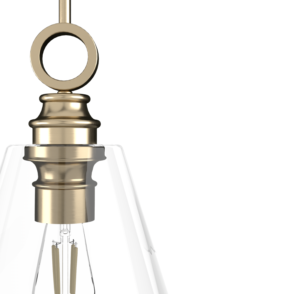 Modern style with a touch of elegance, the Klein pendant is a picture of understated beauty. Suitable in the entry, dining room, or any entertaining space. The cone-shaped shade and ring ornament above the angular glass creates an exquisite ambiance in your space. Mix and match with other fixtures from this collection or from our ceiling fan designs.