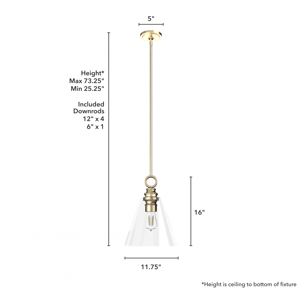 CUSTOMIZABLE HANGING OPTIONS: With the minimum required downrod, the hanging length is 25.25 inches. When using all of the included downrod, the maximum hanging length is 73.25 inches.