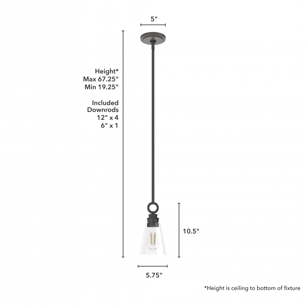 CUSTOMIZABLE HANGING OPTIONS: With the minimum required downrod, the hanging length is 19.25 inches. When using all of the included downrod, the maximum hanging length is 67.25 inches.