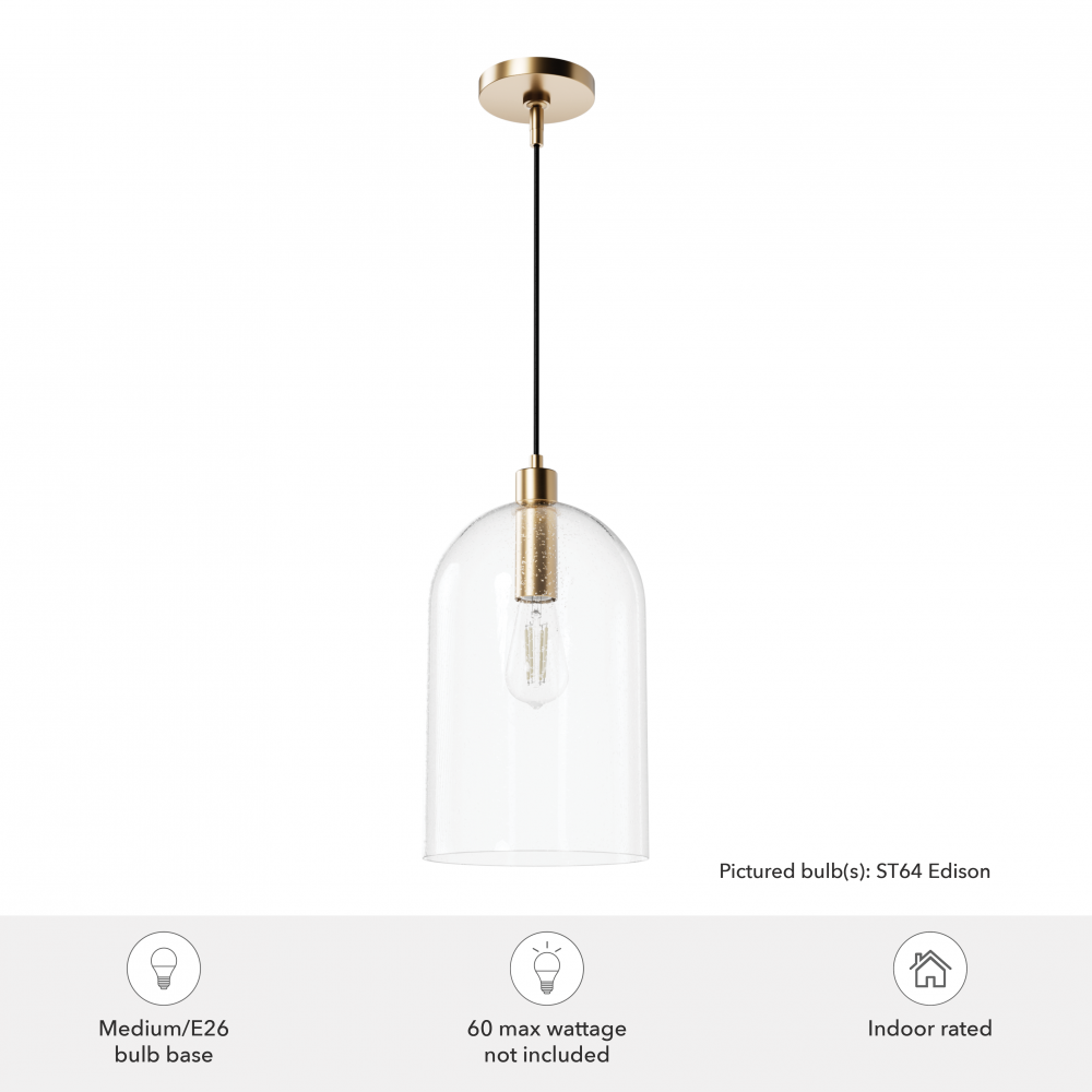 Simple and streamlined, the Lochemeade modern pendant features clear glass dome shades that leave an impression without being overpowering. The variety of available glass shade finishes – like clear seeded glass and smoked glass – gives this modern pendant light versatility in your space’s style. Mix and match with other fixtures from this collection or from our ceiling fan designs.