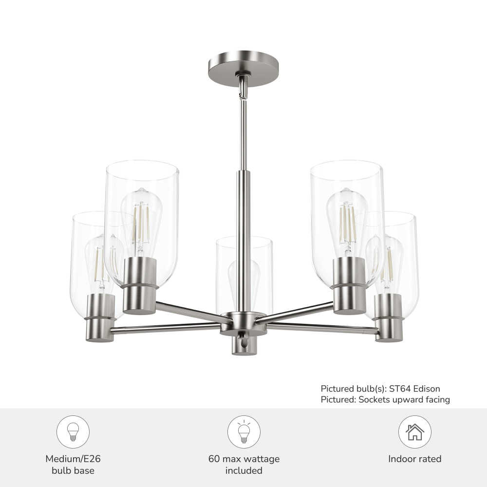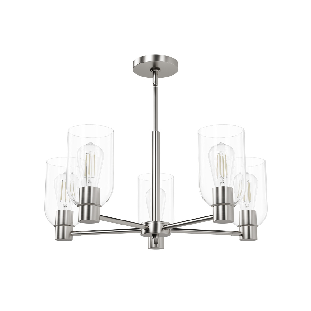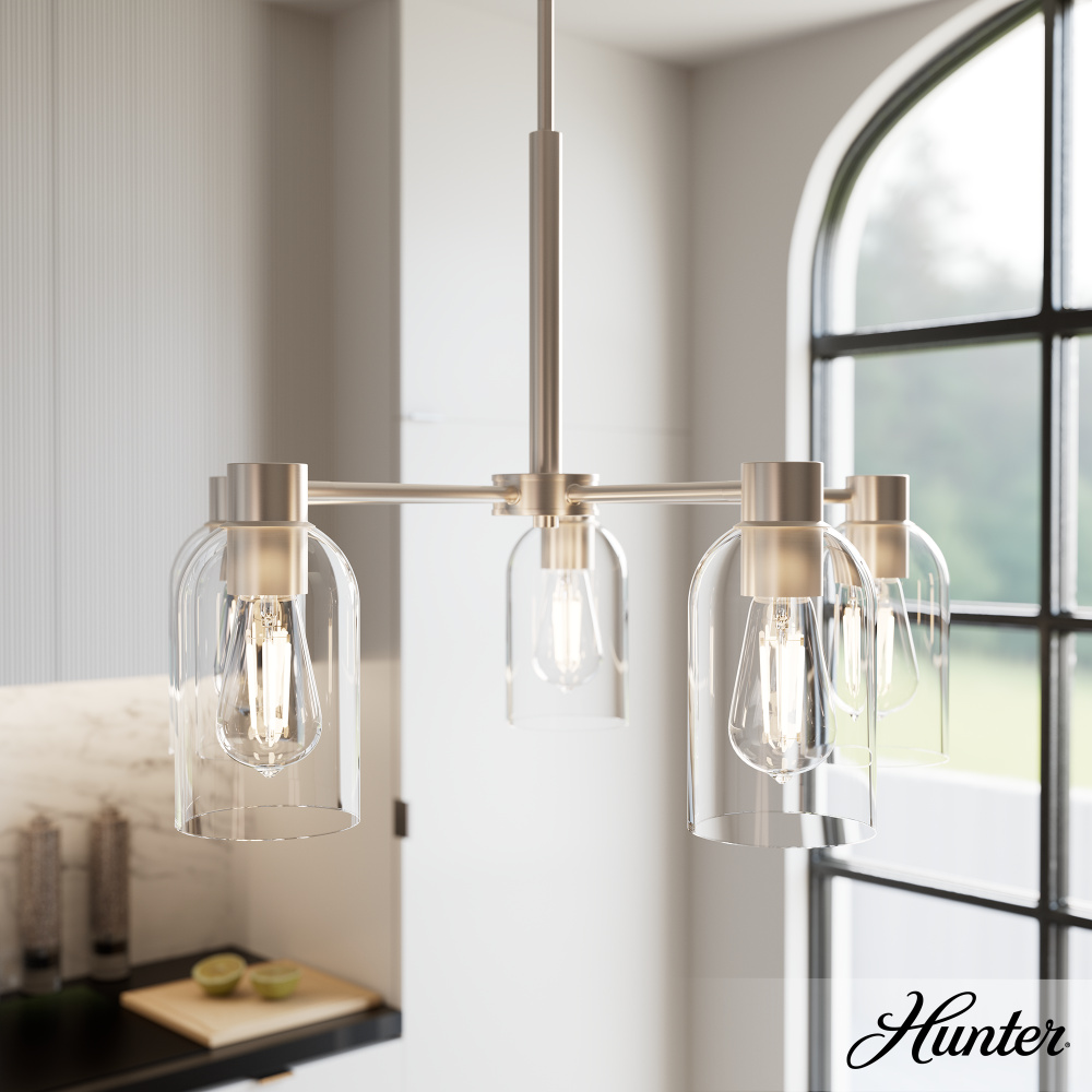 Hunter Lochemeade Brushed Nickel with Clear Glass 5 Light Chandelier Ceiling Light Fixture