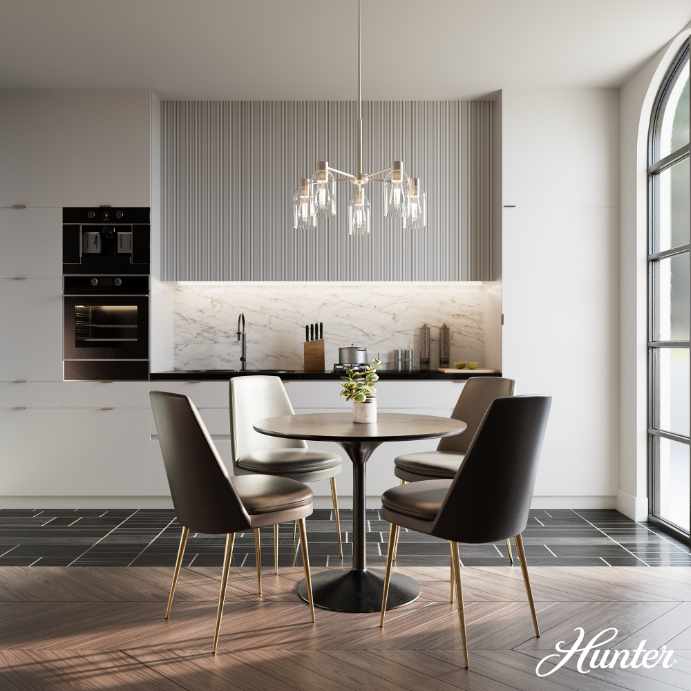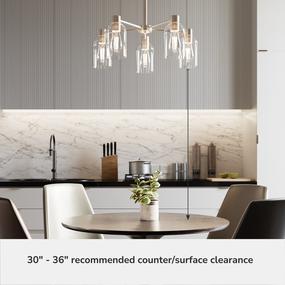 Light up your space with the Lochemeade 5 Light Chandelier, a striking blend of formal modern style and refined elegance. Featuring clean lines and luxurious materials, this chandelier creates a polished ambiance perfect for indoor spaces like kitchens, dining rooms, and entryways. Customize your look with glass shades that can be positioned upward for a classic ambiance or downward for a modern vibe—letting you create the perfect mood for any space. Designed to complement the Lochemeade ceiling fan collection, it brings a cohesive and sophisticated look to your home.